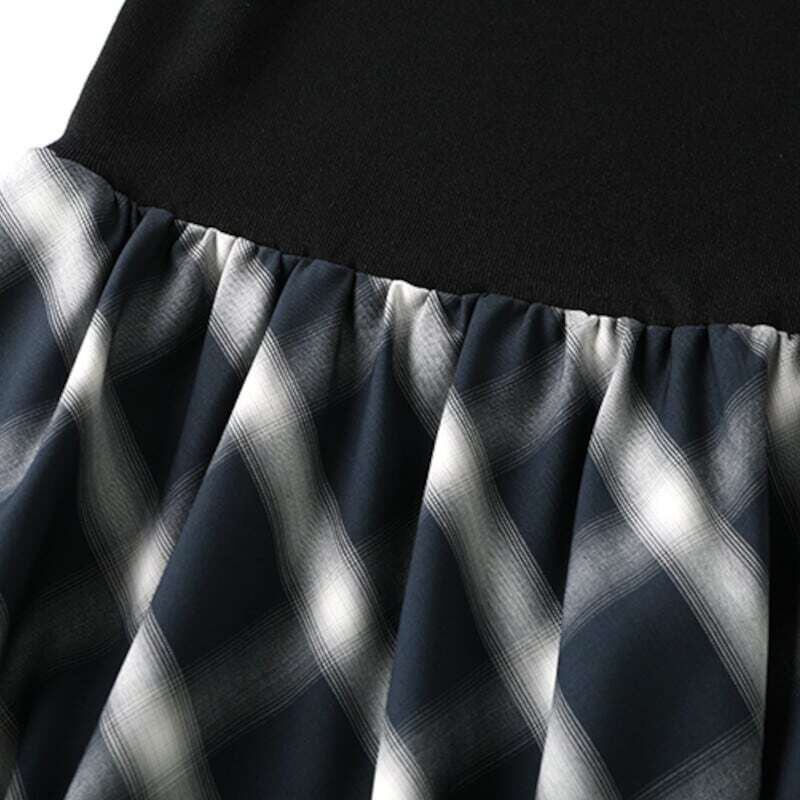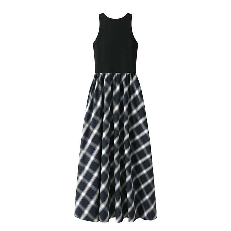 Sleeveless knit combi tartan check flare dress スリーブレニットコンビスタータンチェックフレアワンピース