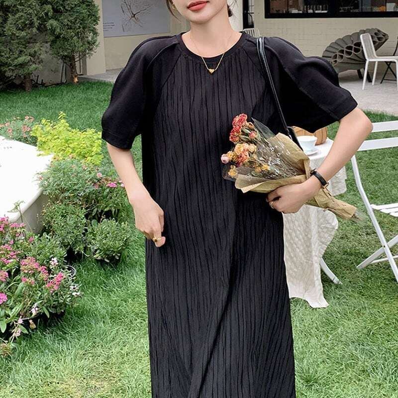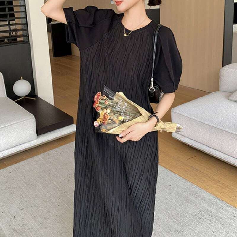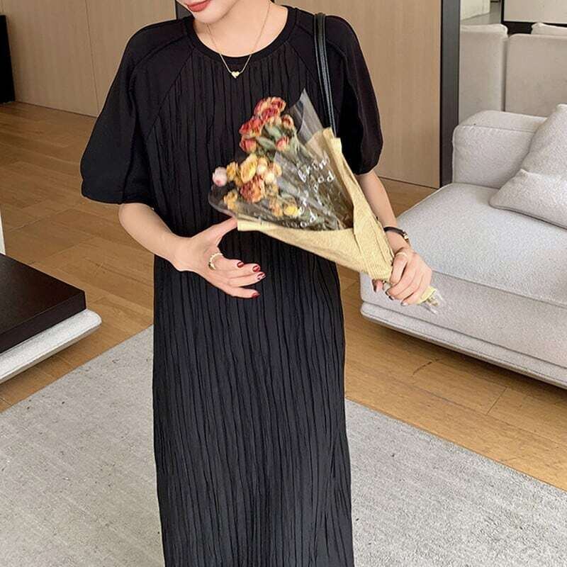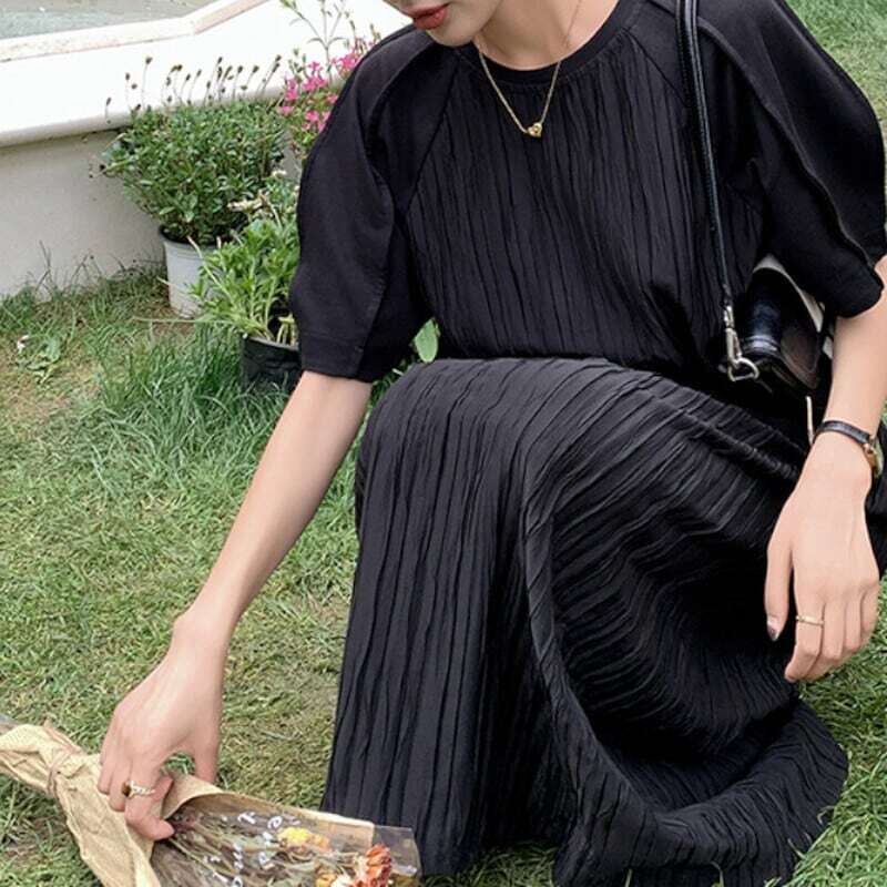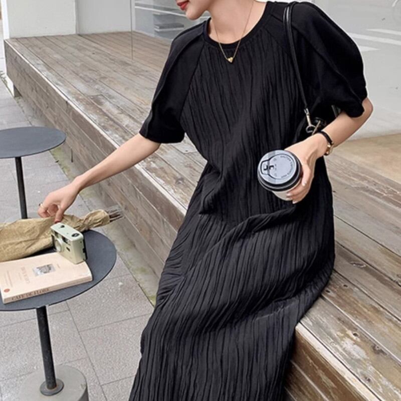 Pleated black midi dress プリーツドブラックミディワンピース