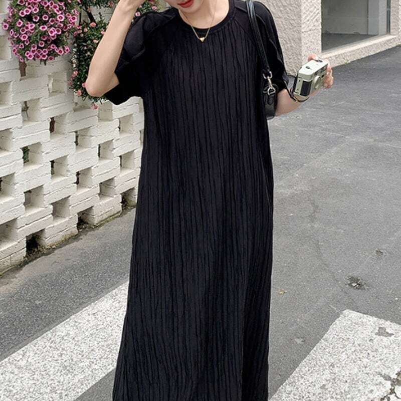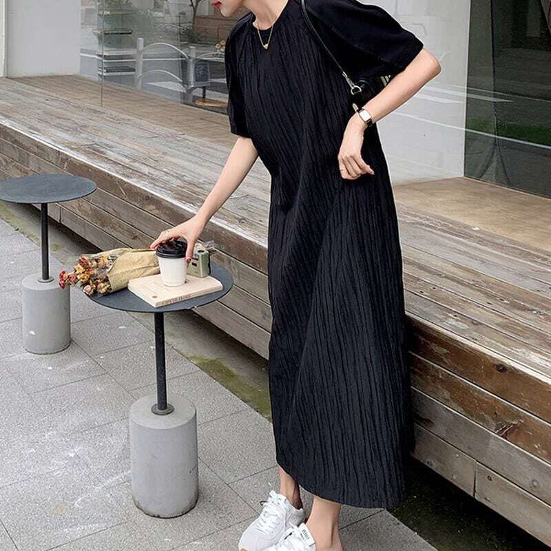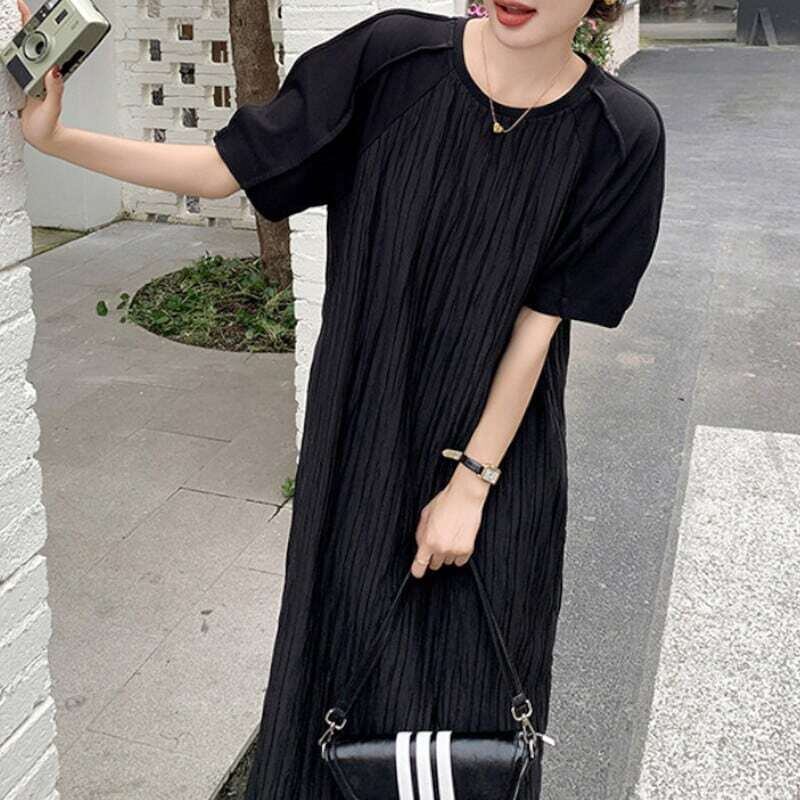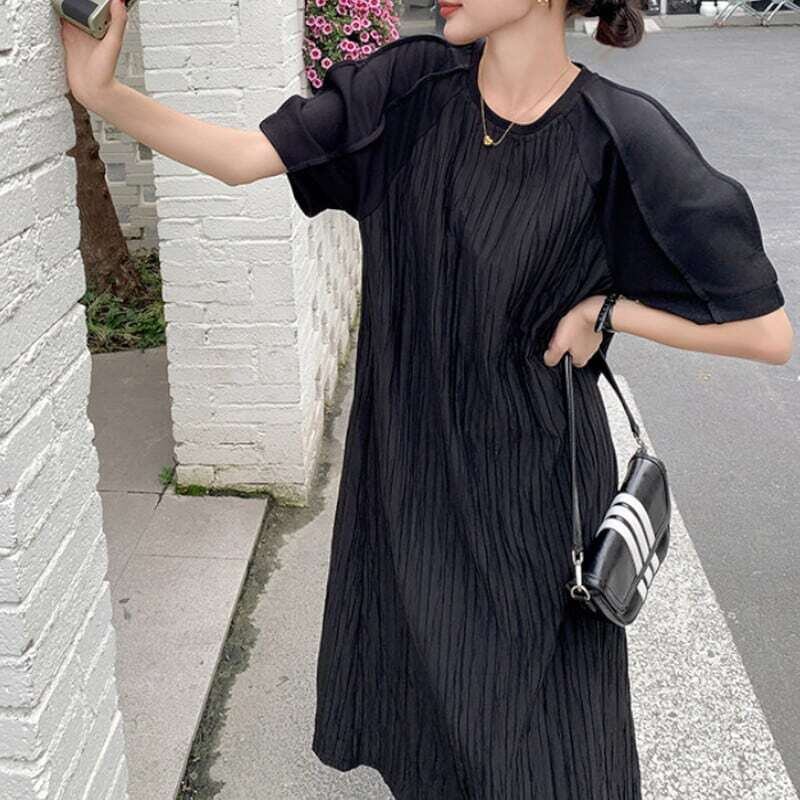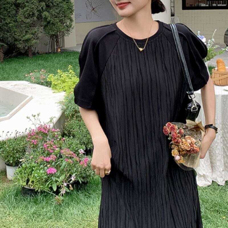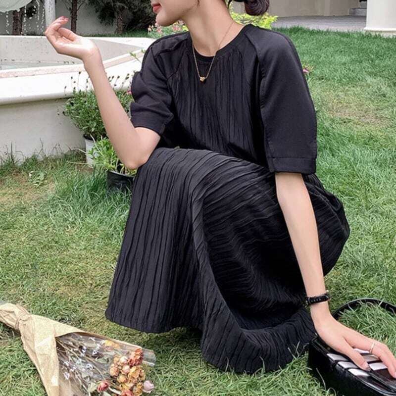 Pleated black midi dress プリーツドブラックミディワンピース