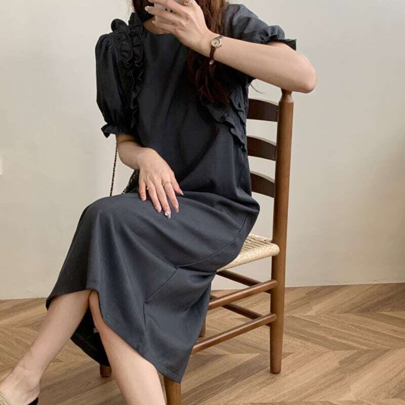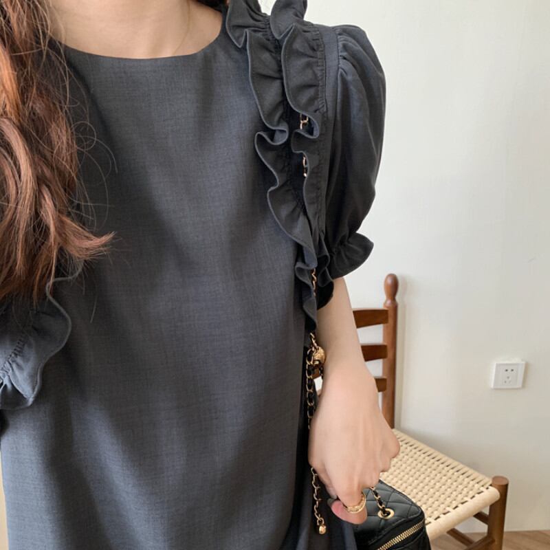 Frill shoulder midi one-piece フリルショルダーミディワンピース