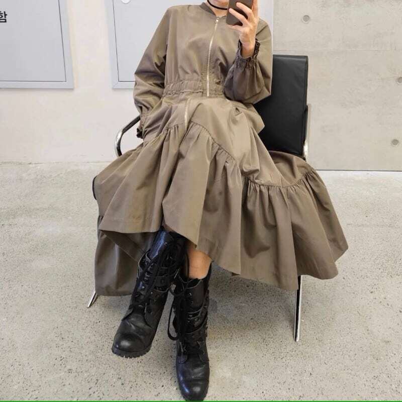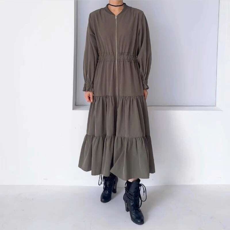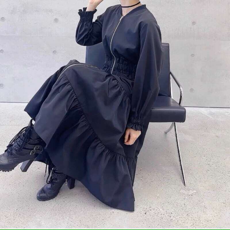 Loose zipper A-line tiered dress ルーズジッパーAラインロングドレス