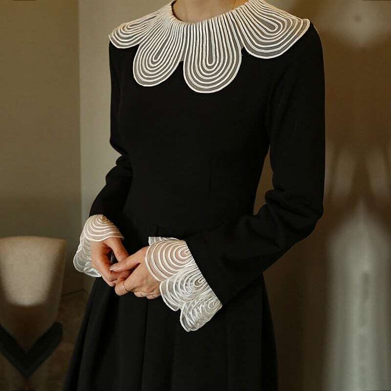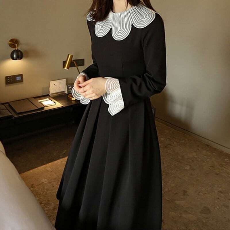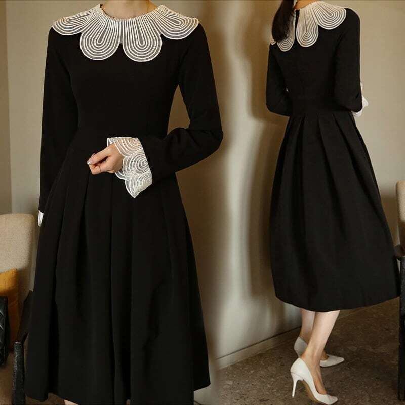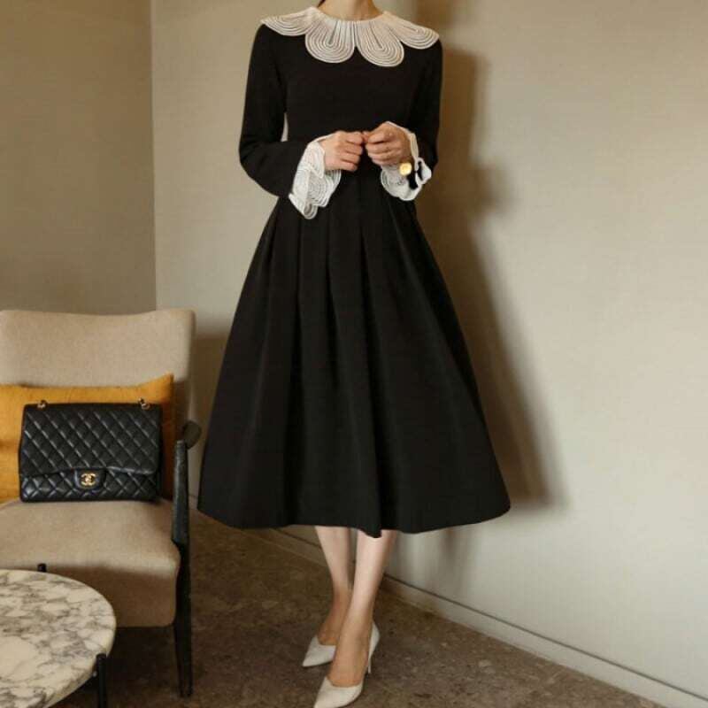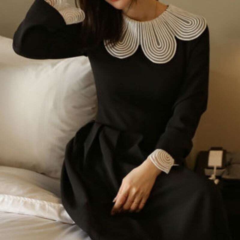 Retro frill design knit dress レトロフリルデザインニットワンピース