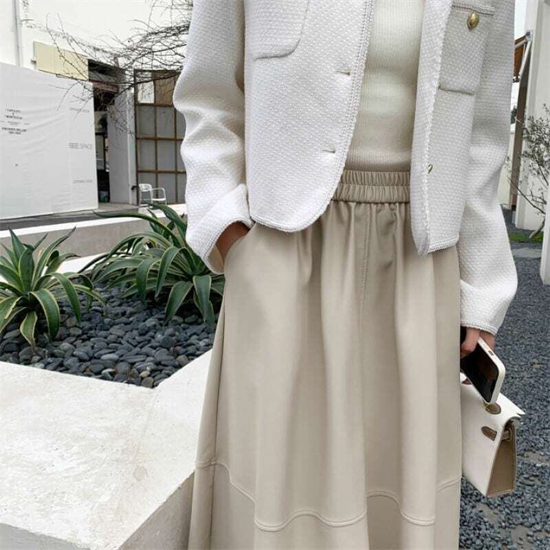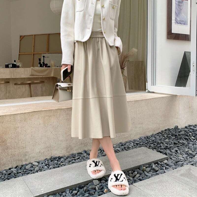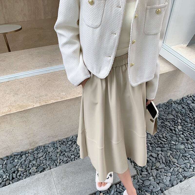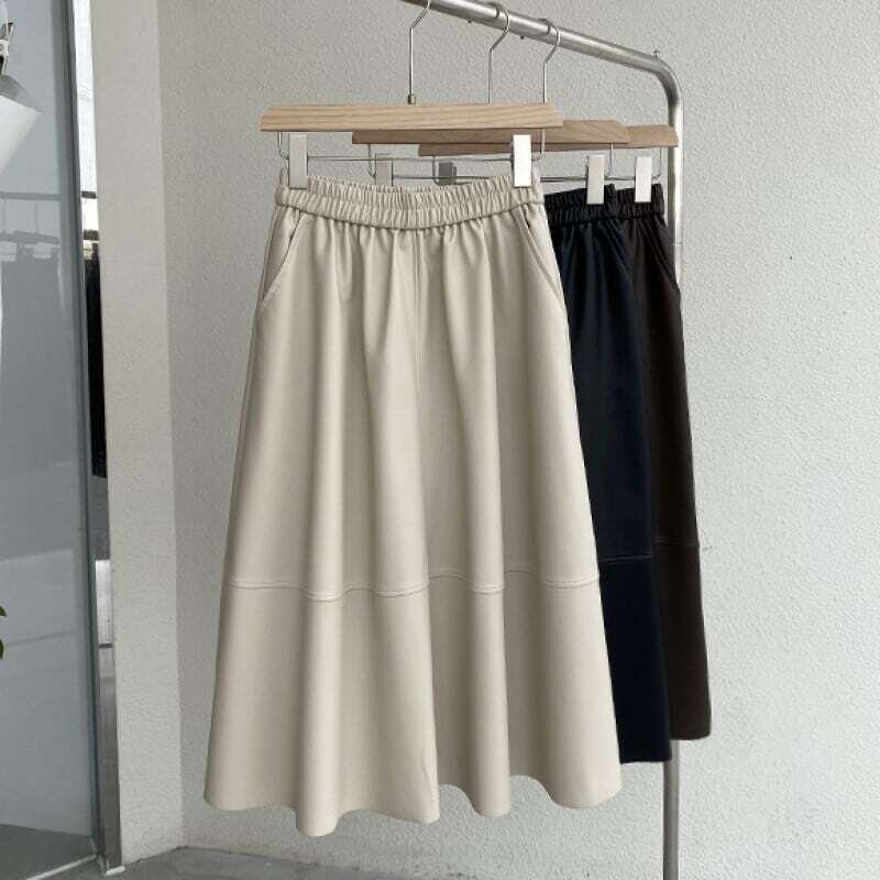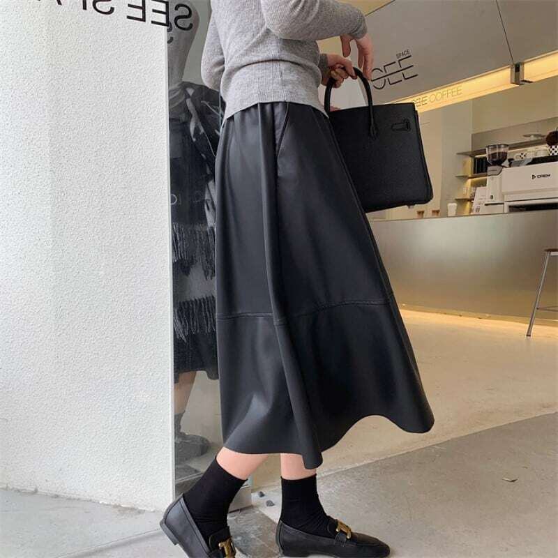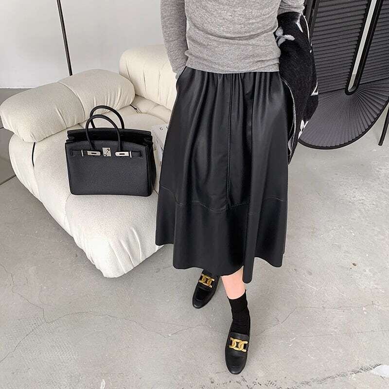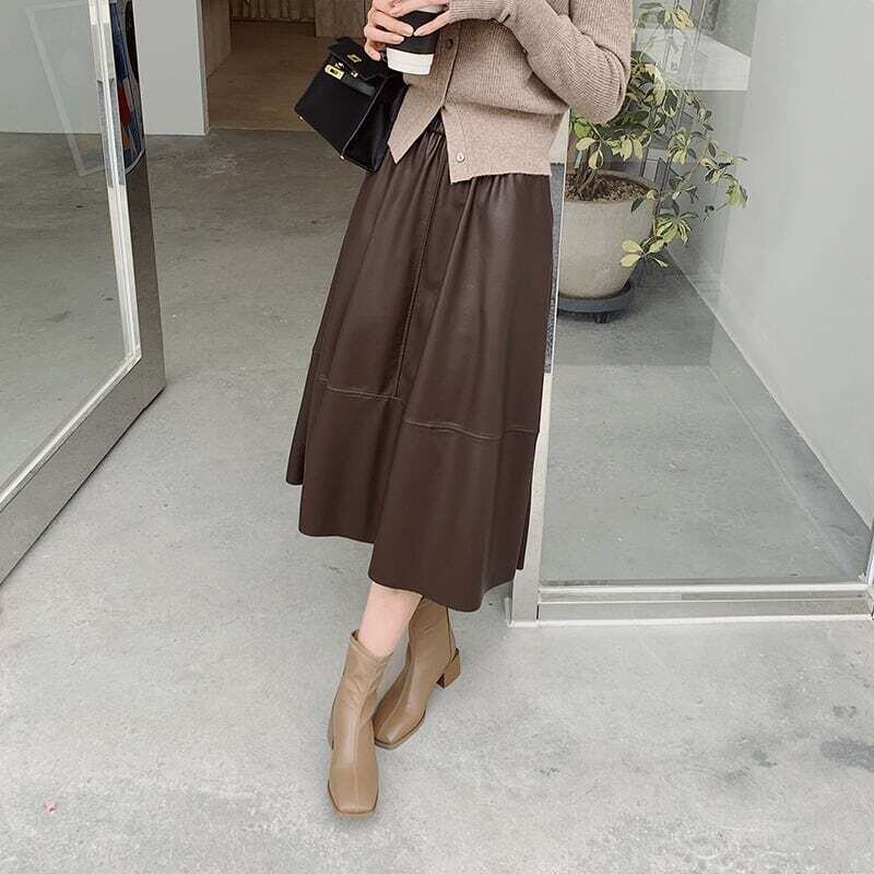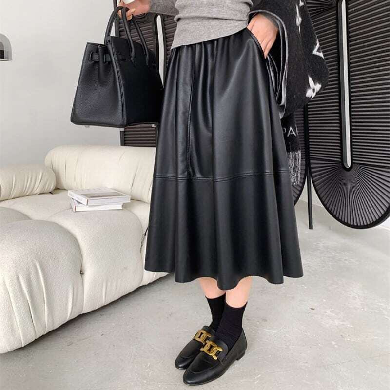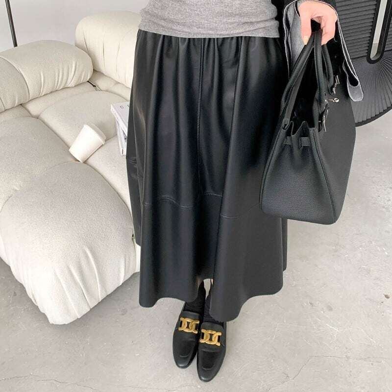 PU leather high waist flare skirt PUレザーハイウエストフレアスカート