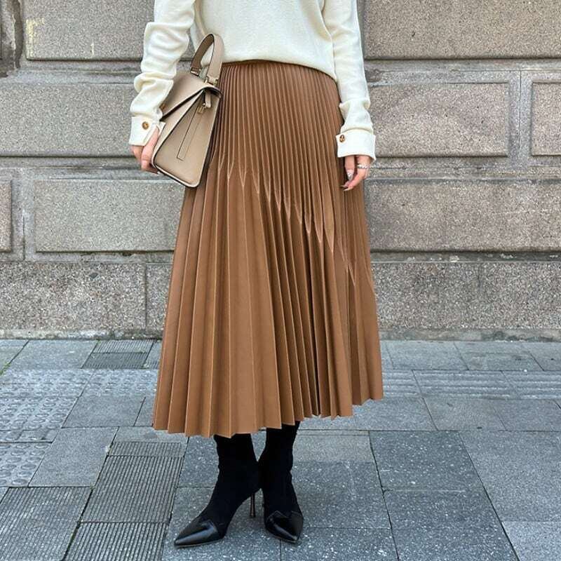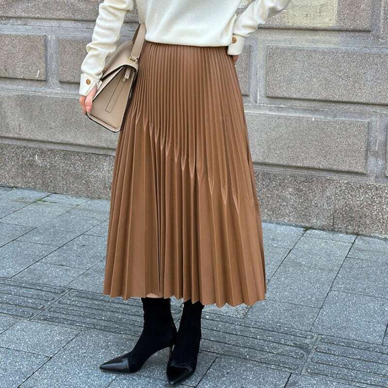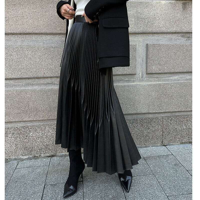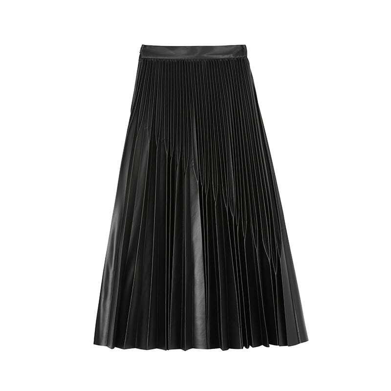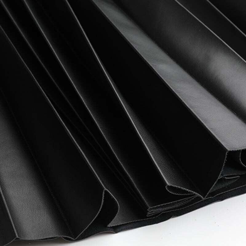 PU leather design pleated midi skirt PUレザーデザインプリーツドミディスカート