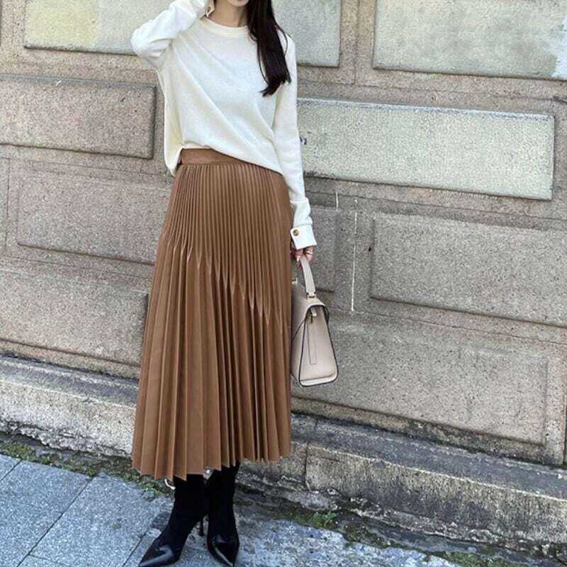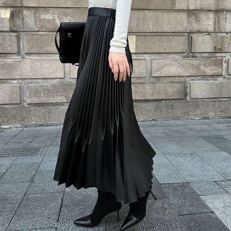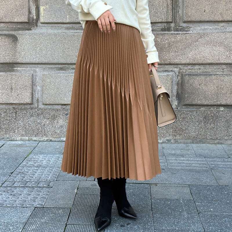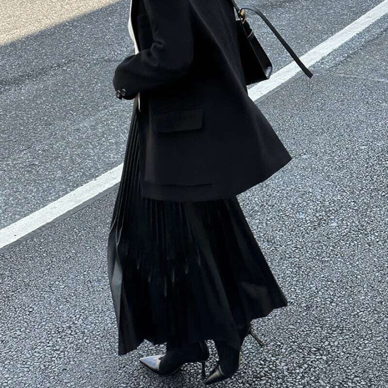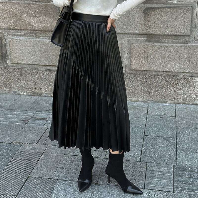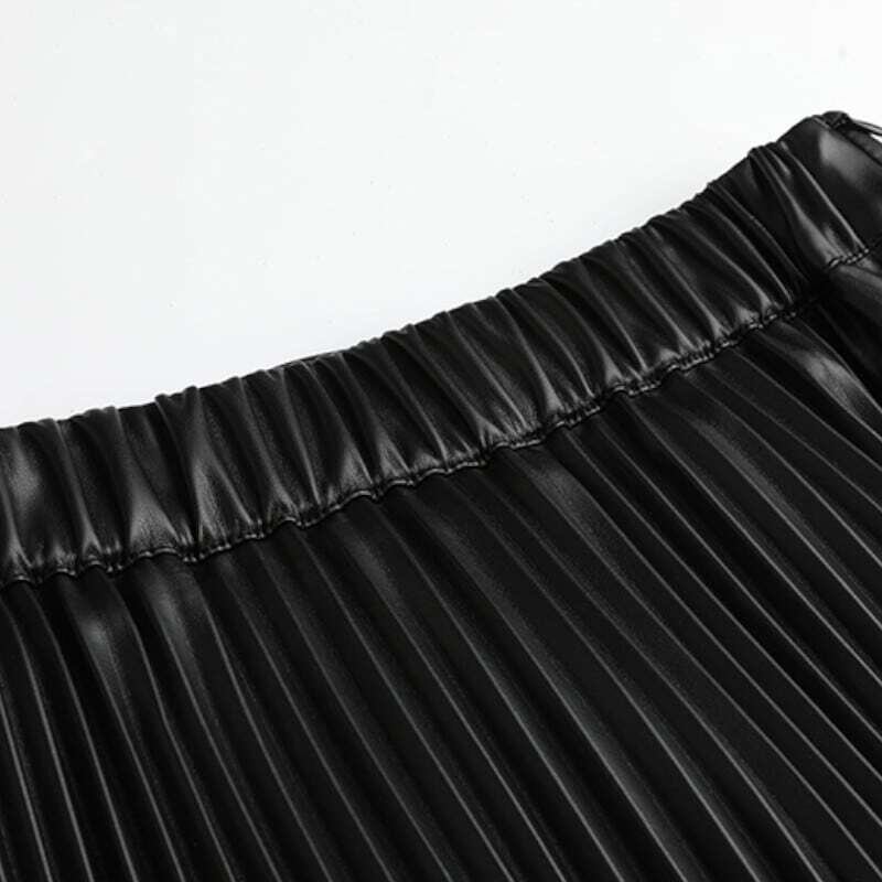 PU leather design pleated midi skirt PUレザーデザインプリーツドミディスカート