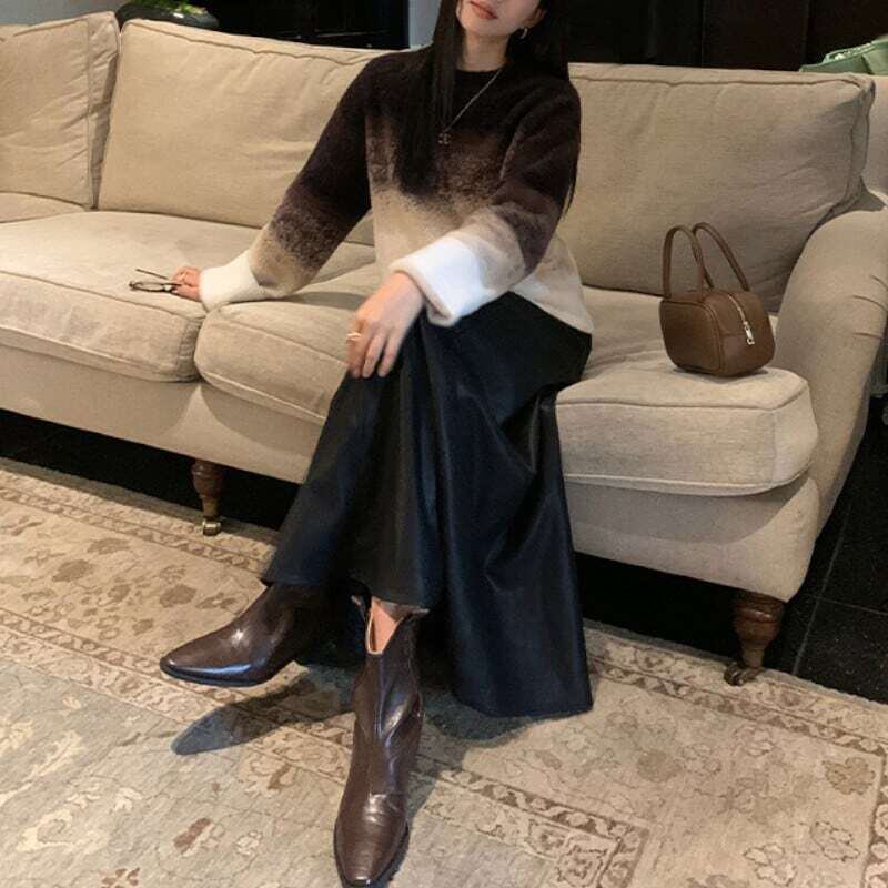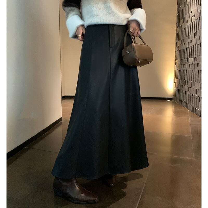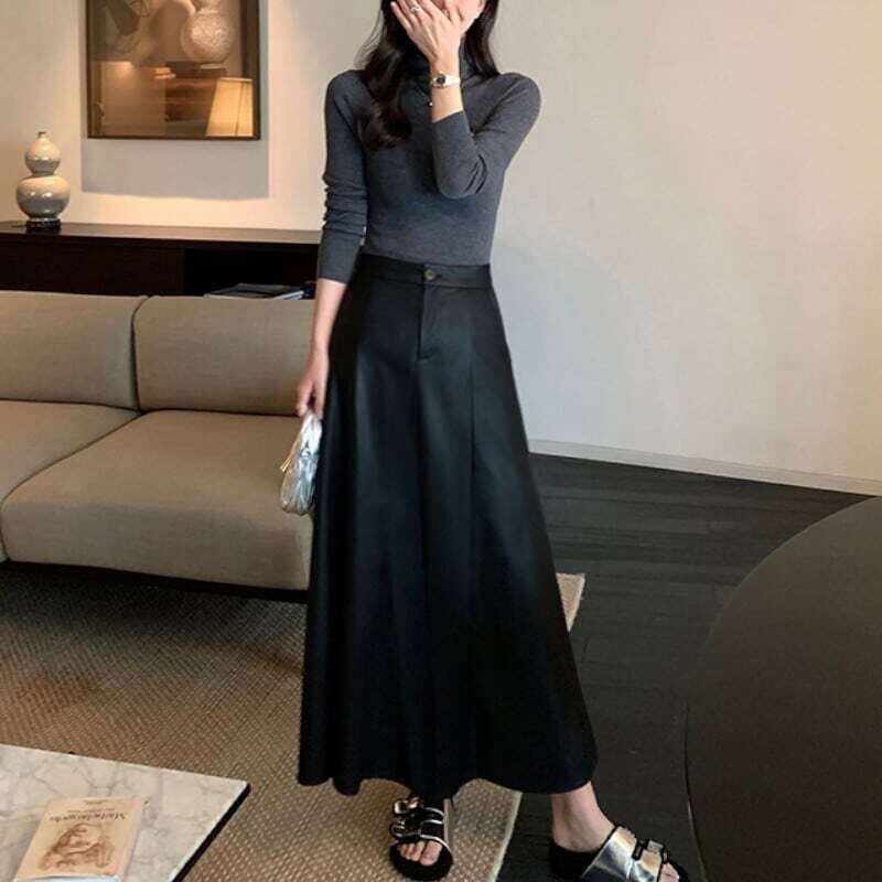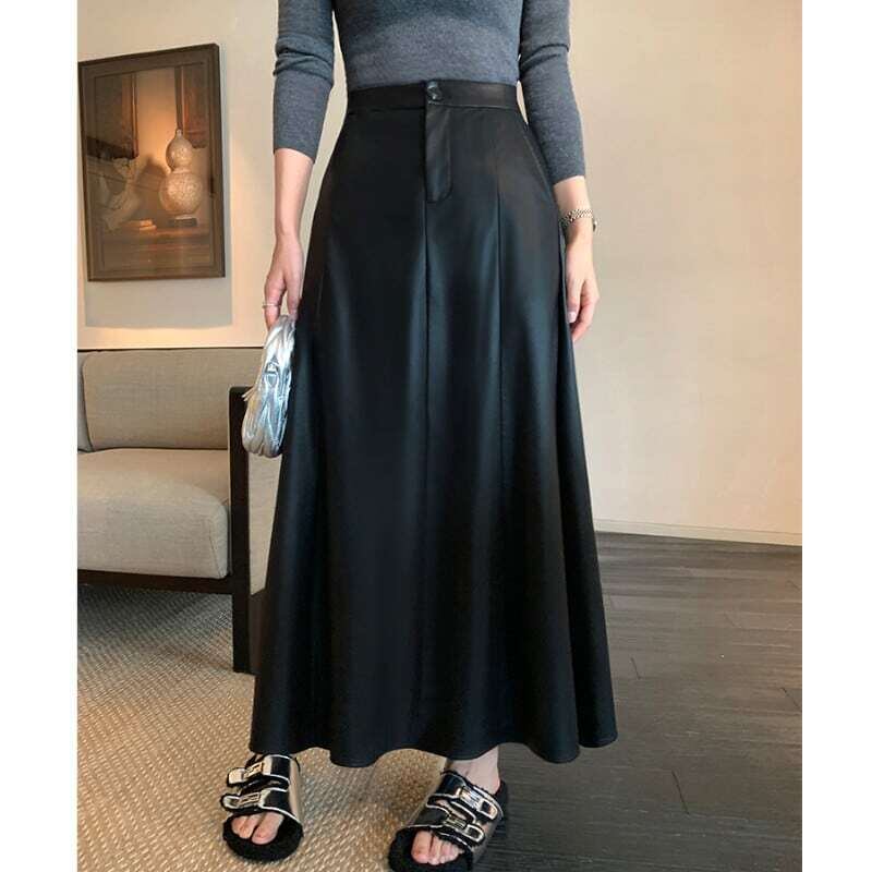 High waist PU leather A-line skirt ハイウエストPUレザーAラインスカート