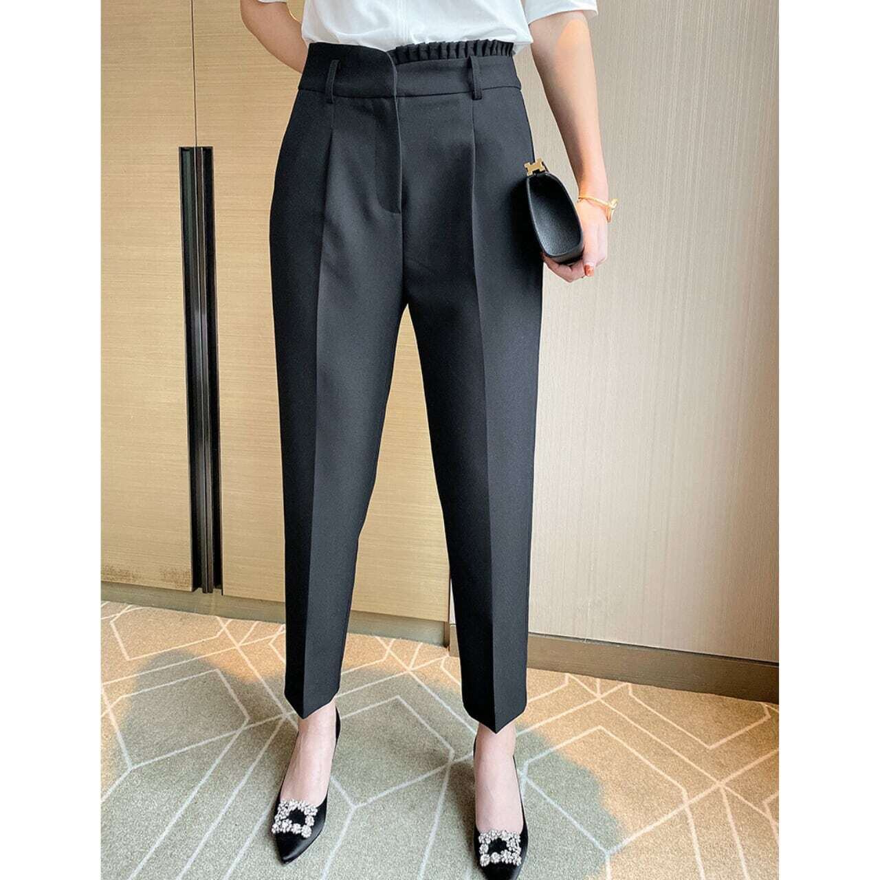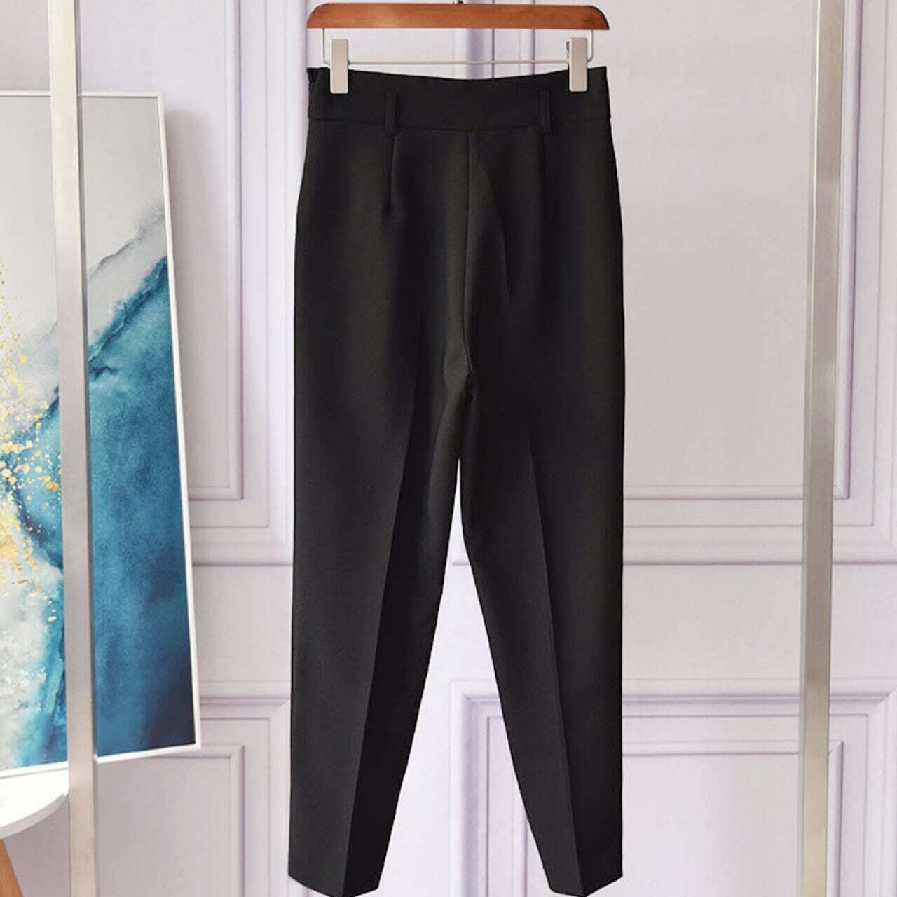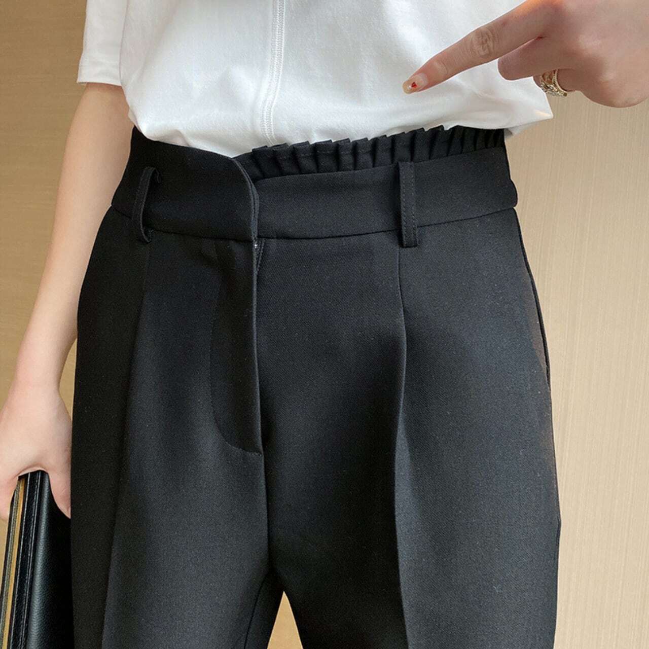 Asymmetry frill high waist tapered pants アシンメトリーフリルハイウエストテーパードパンツ