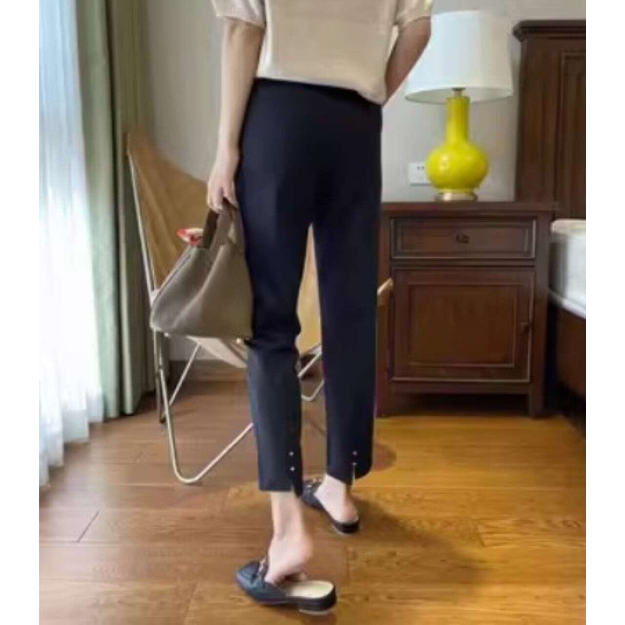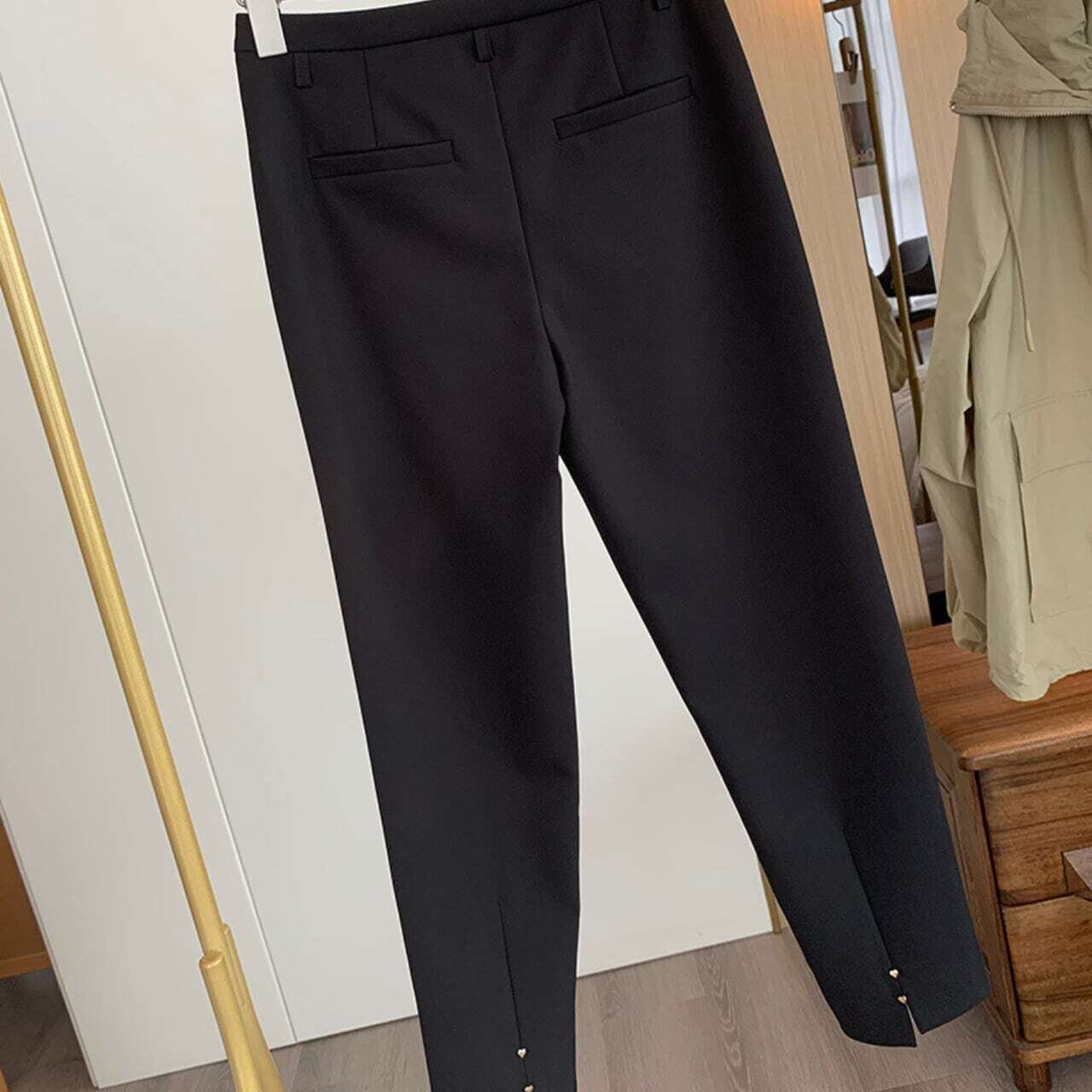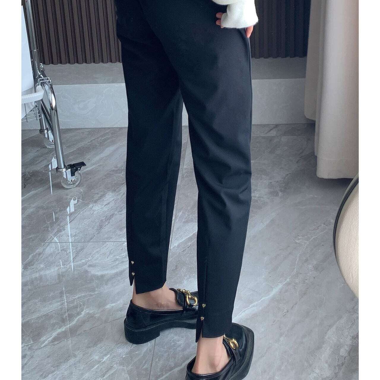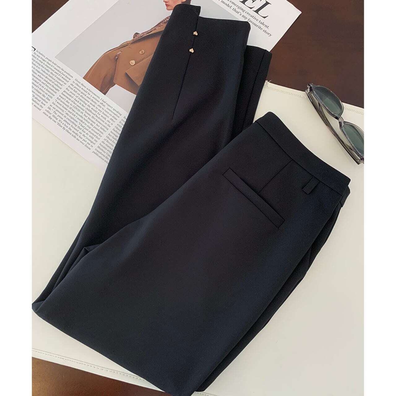 Back slit heart metal straight pants バックスリットハートメタルストレートパンツ