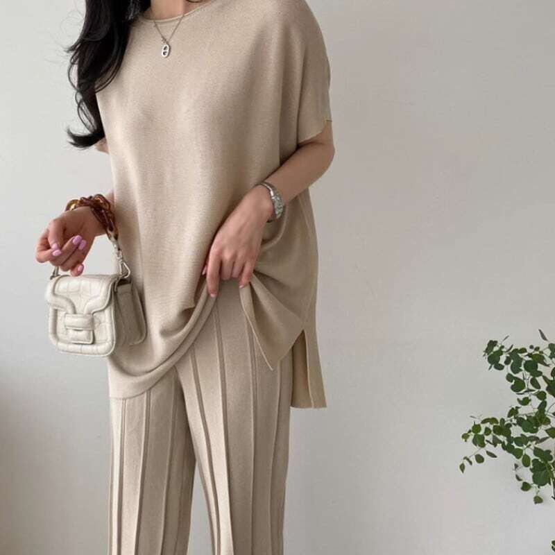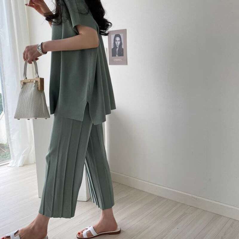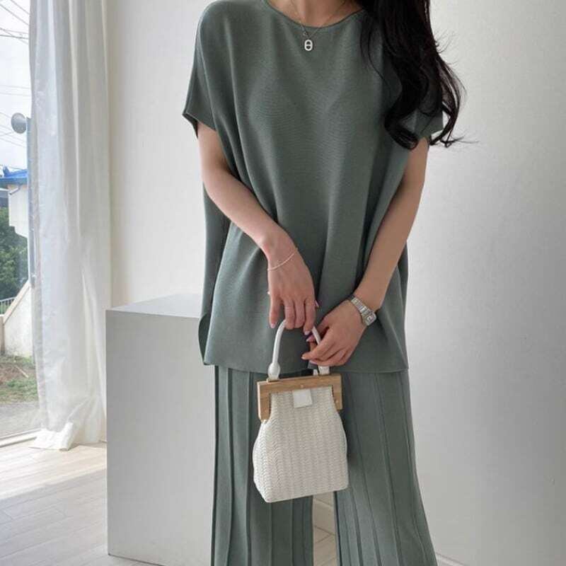 Summer knit loose pants setup サマーニットルーズパンツセットアップ