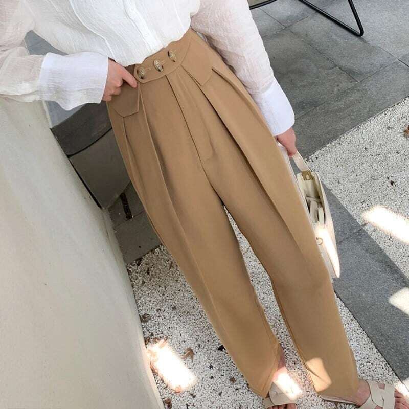High waist front button design pants ハイウエストフロントボタンデザインパンツ