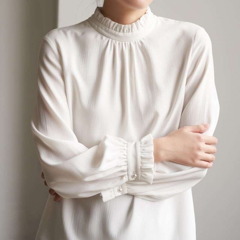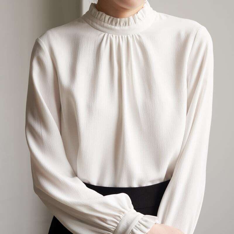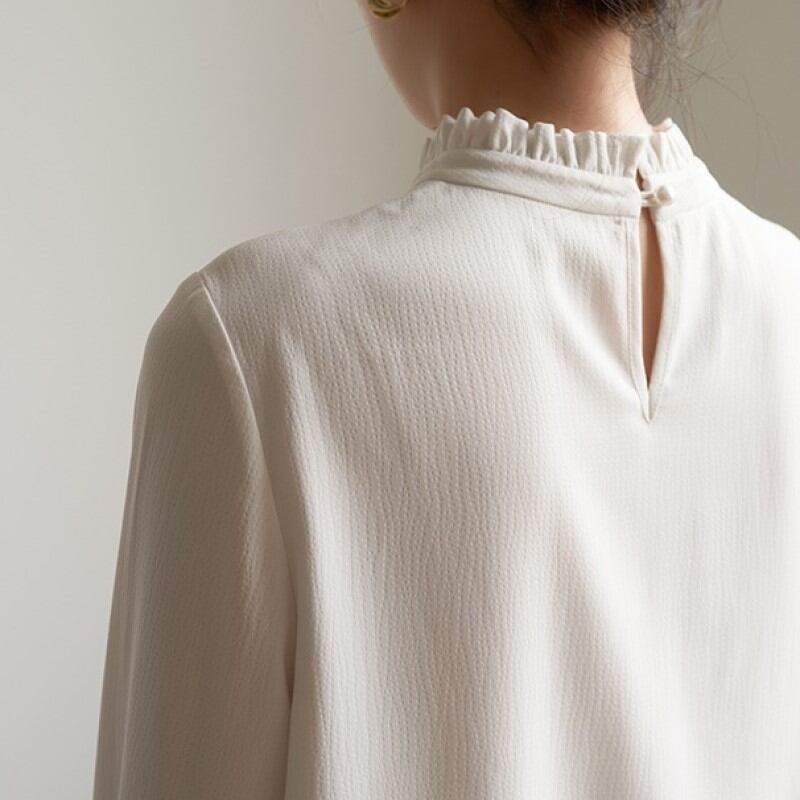 Stand frill collar lady blouse スタンドフリルカラーレディブラウス