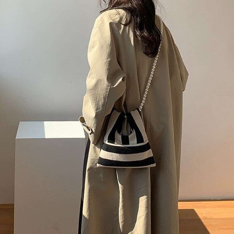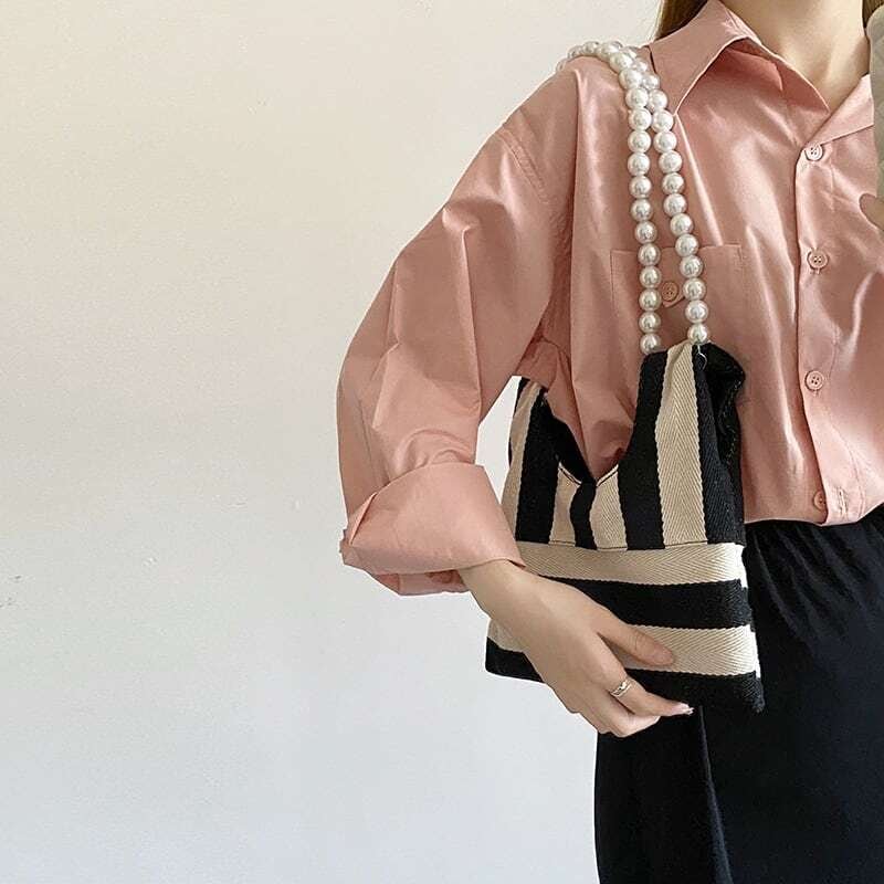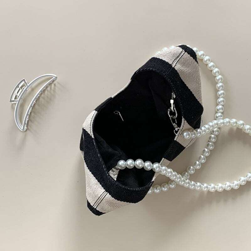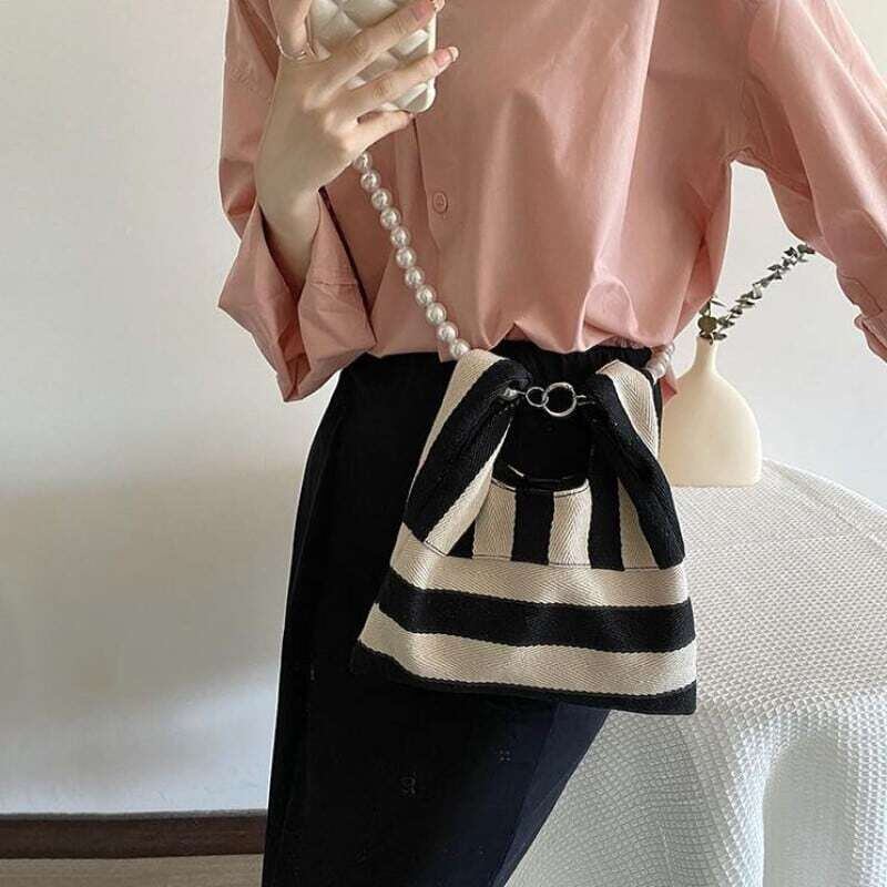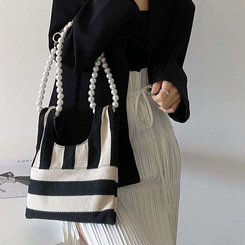 Pearl chain striped canvas bag パールチェーンストライプキャンバスバッグ