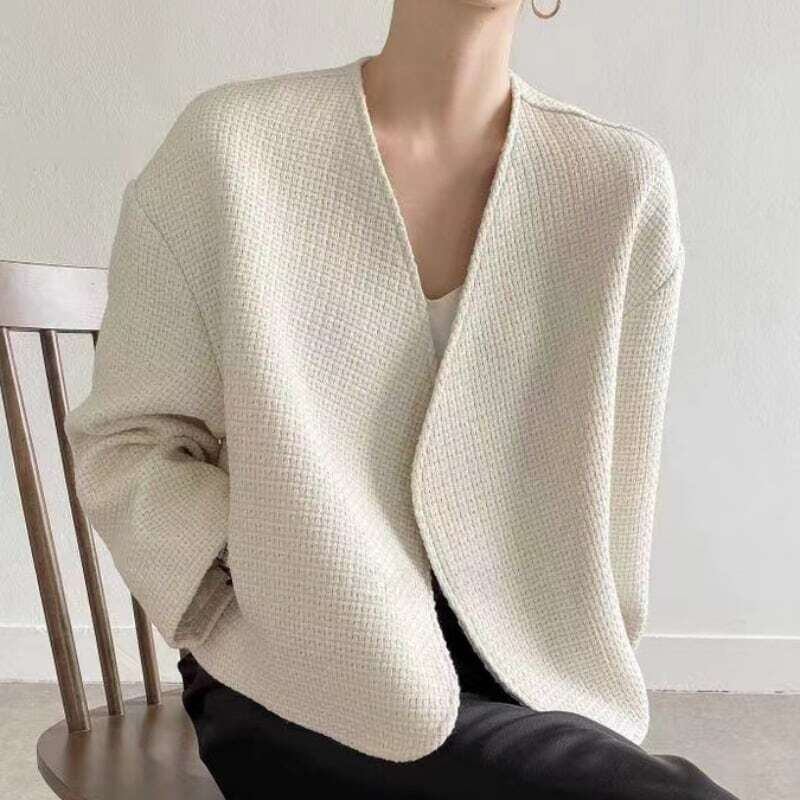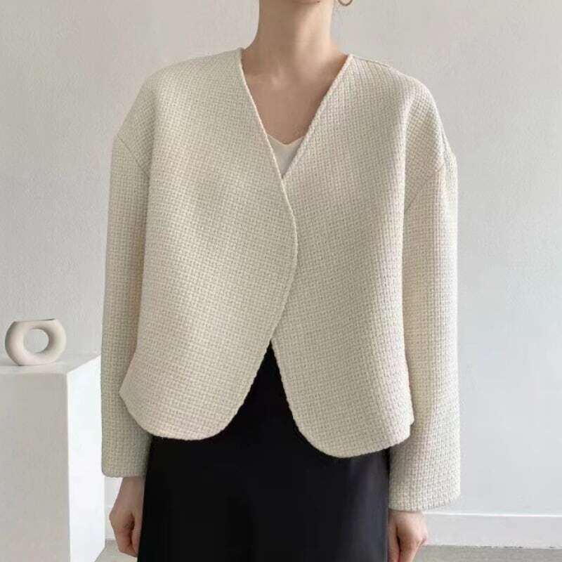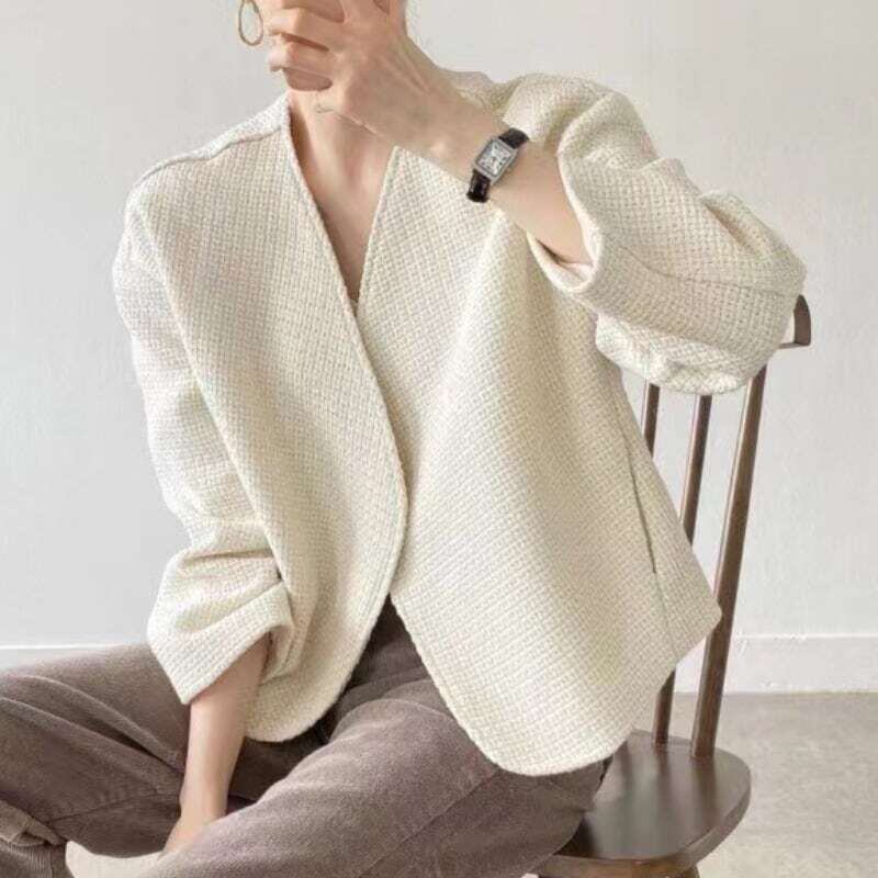 V-neck simple tweed jacket Vネックシンプルツイードジャケット