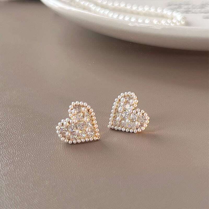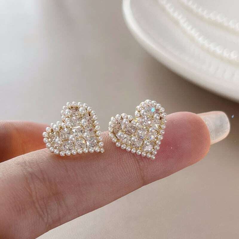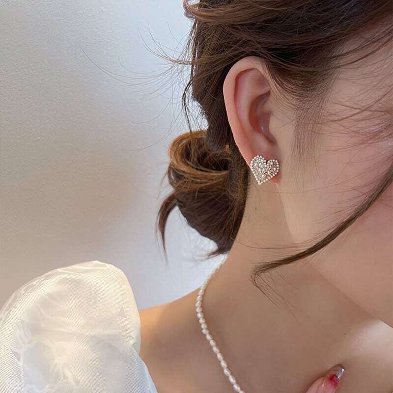Heart motif pearl bijou pierce パールモチーフパールビジューピアス