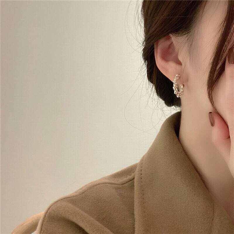 Twist gold pearl hoop pierce ツイストゴールドパールフープピアス