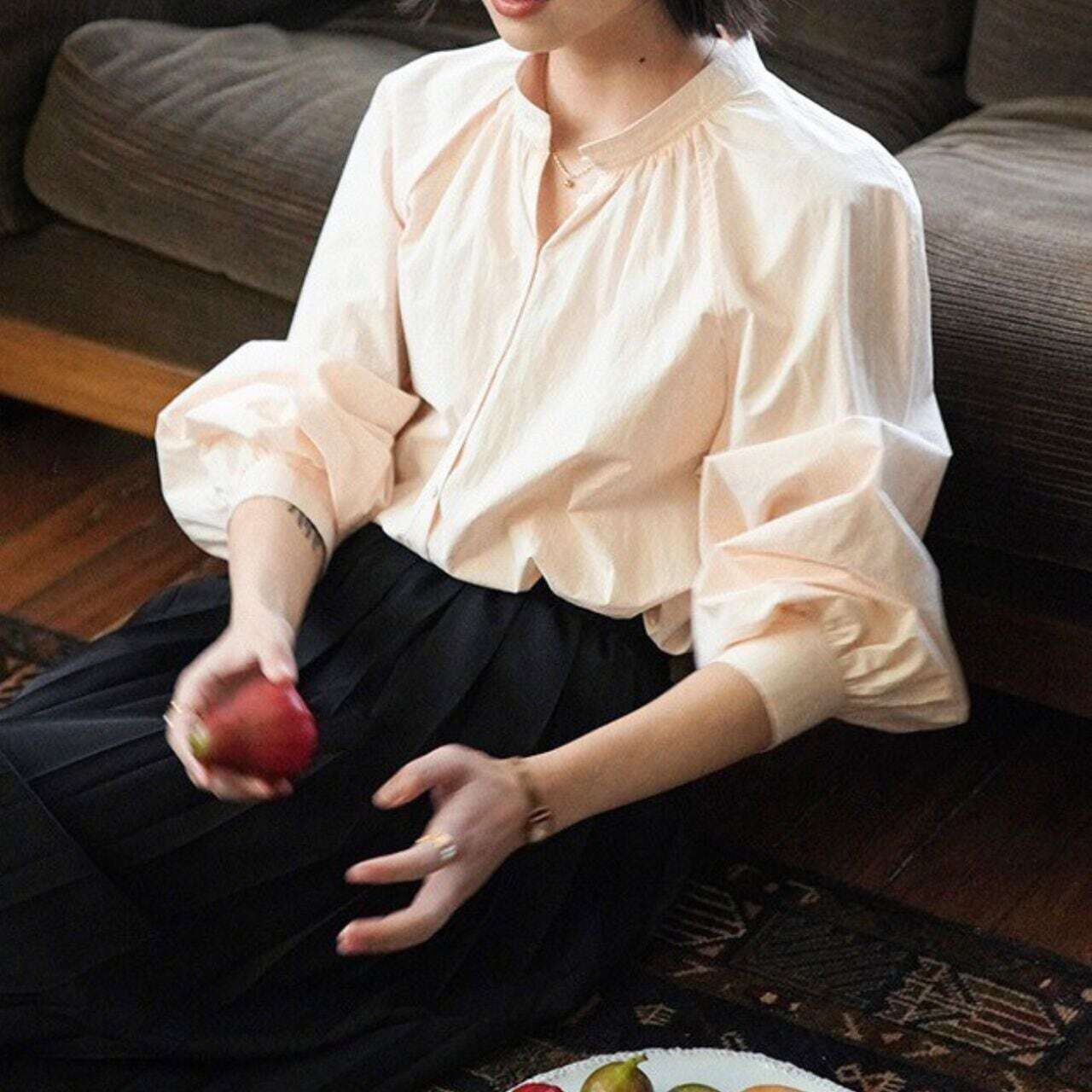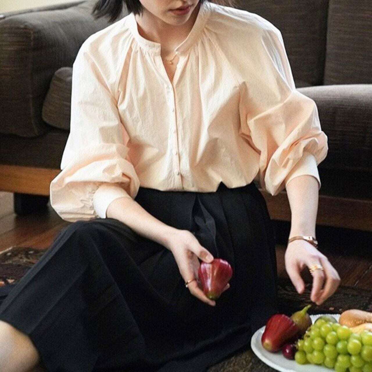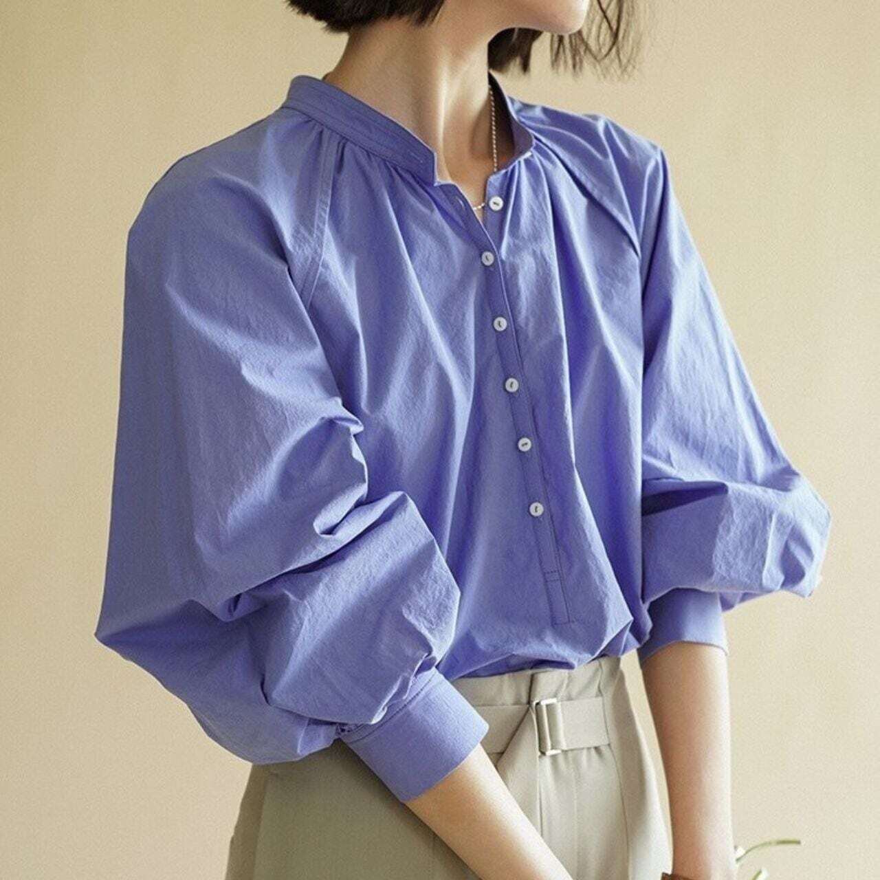 スタンドカラーバルーンスリーブ長袖シャツ