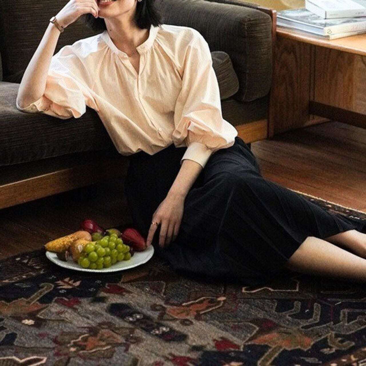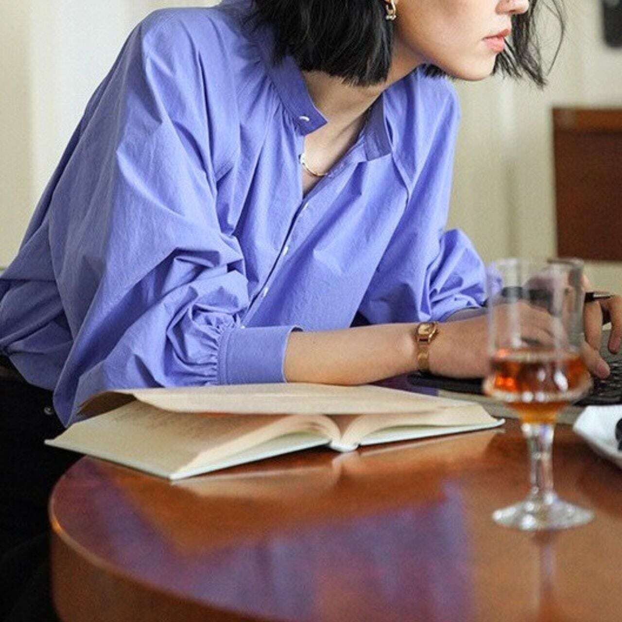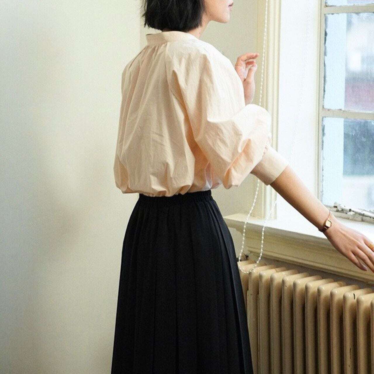 スタンドカラーバルーンスリーブ長袖シャツ