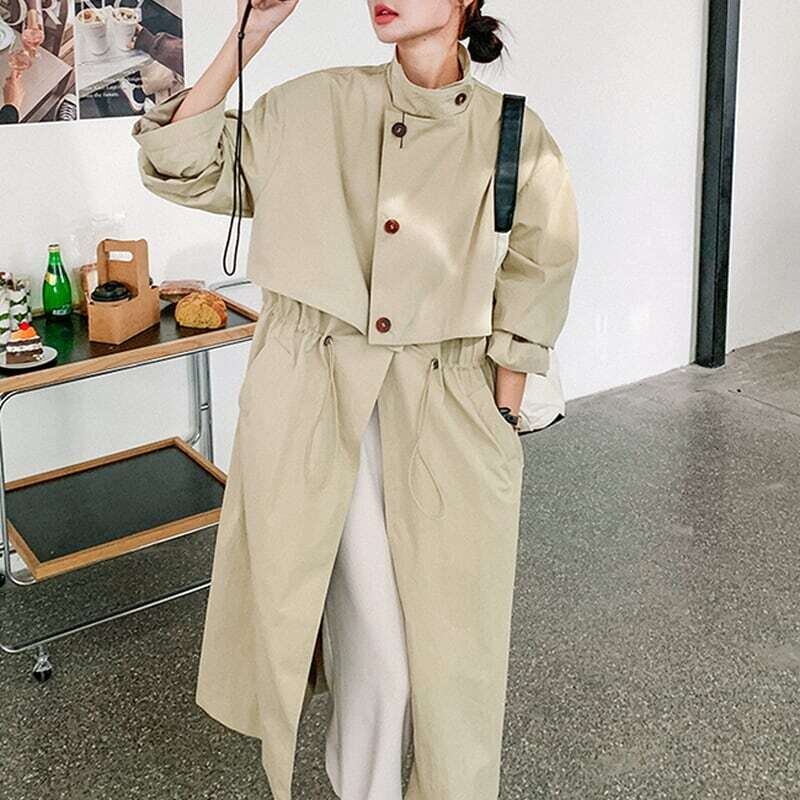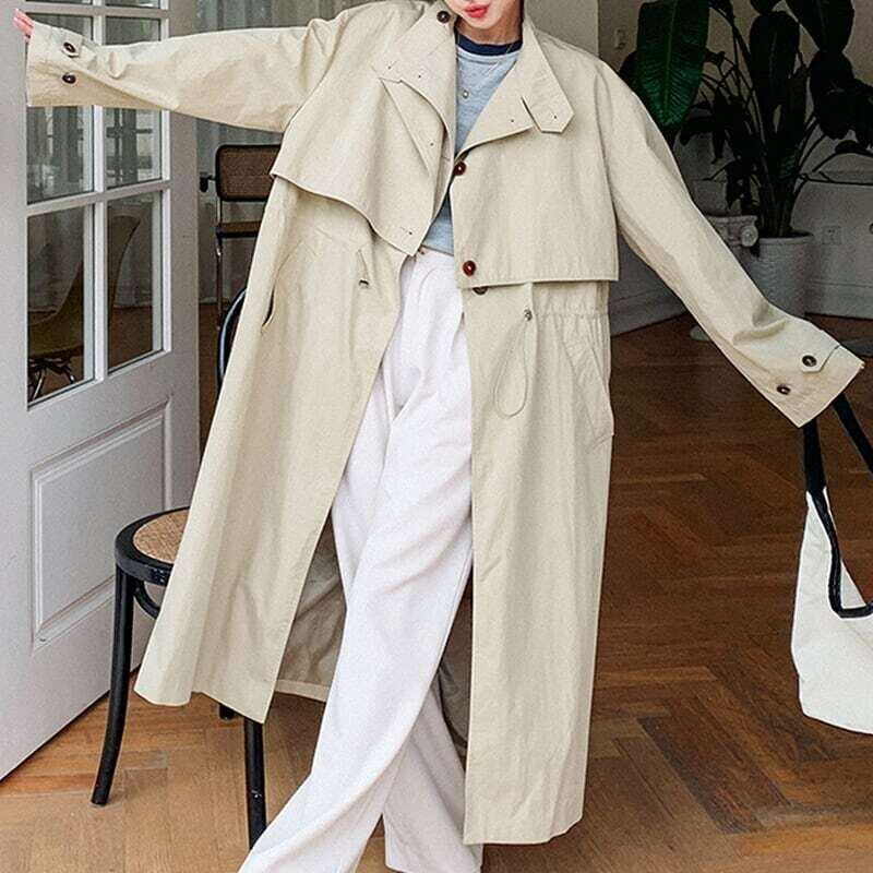Stand collar drawstring trench coat スタンドカラードローストリングトレンチコート