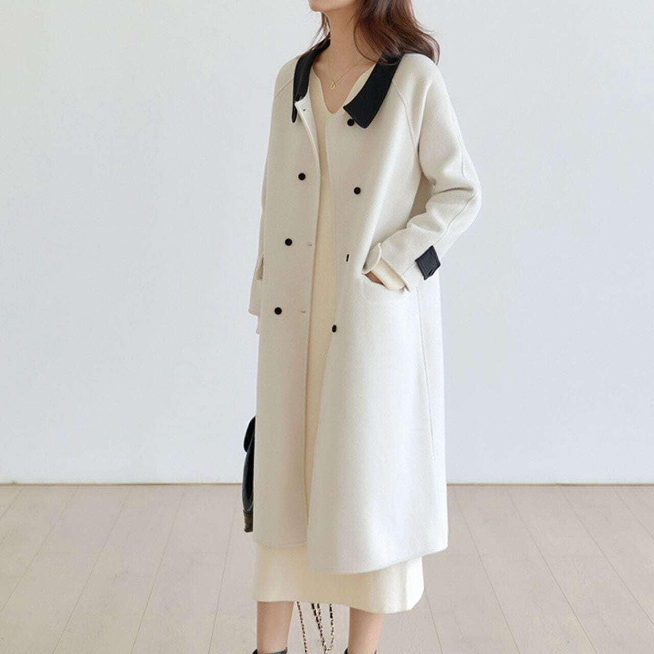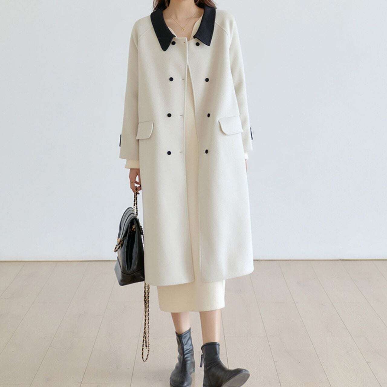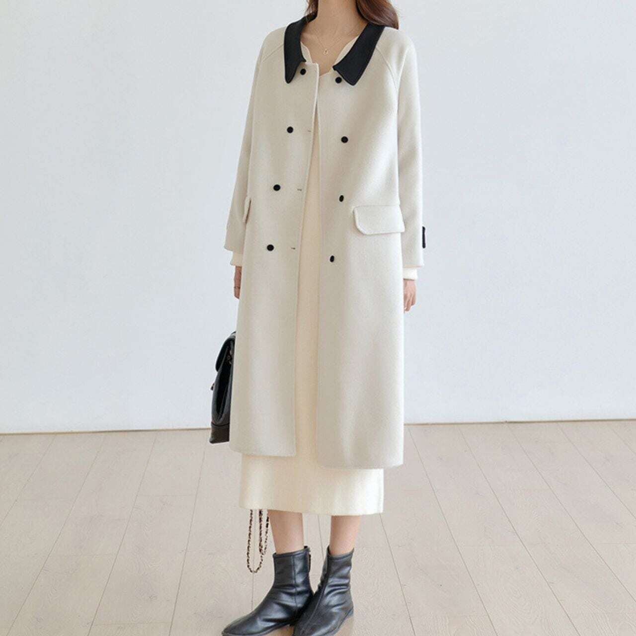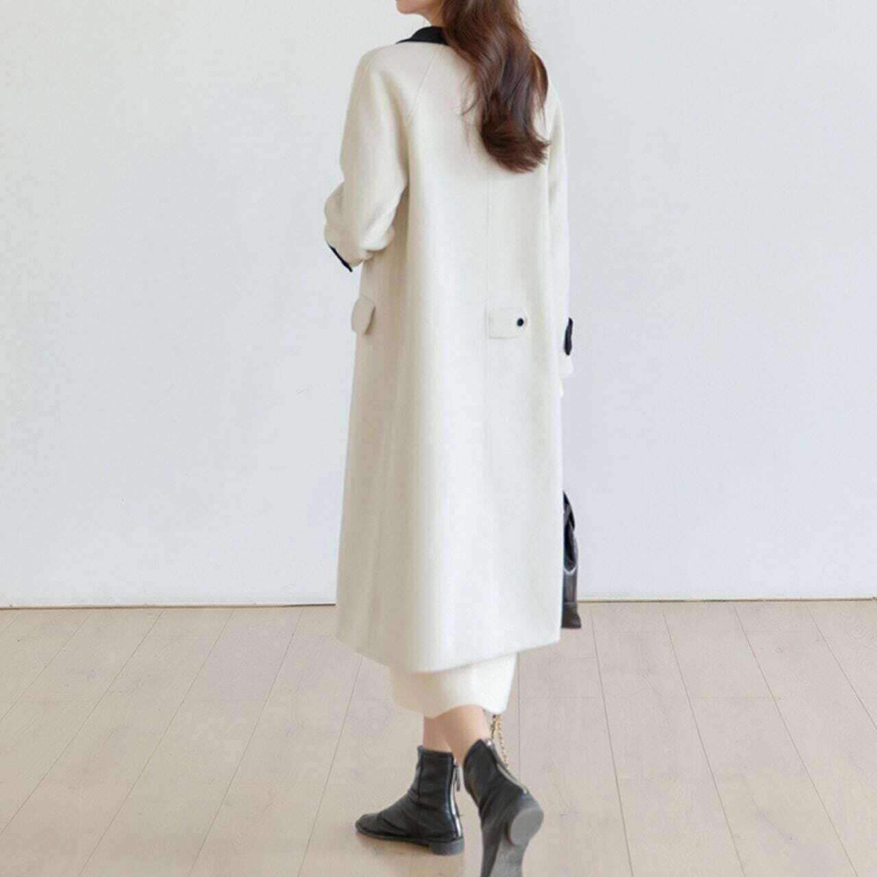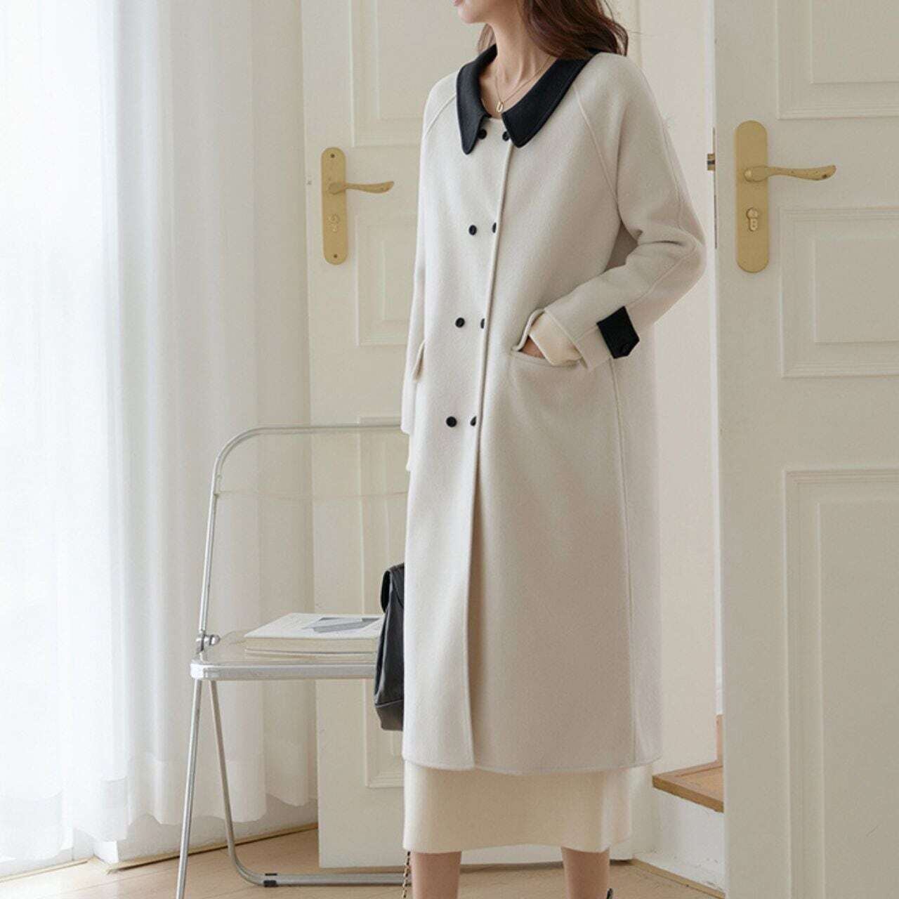 ツートンカラーダブルボタンストレートコート