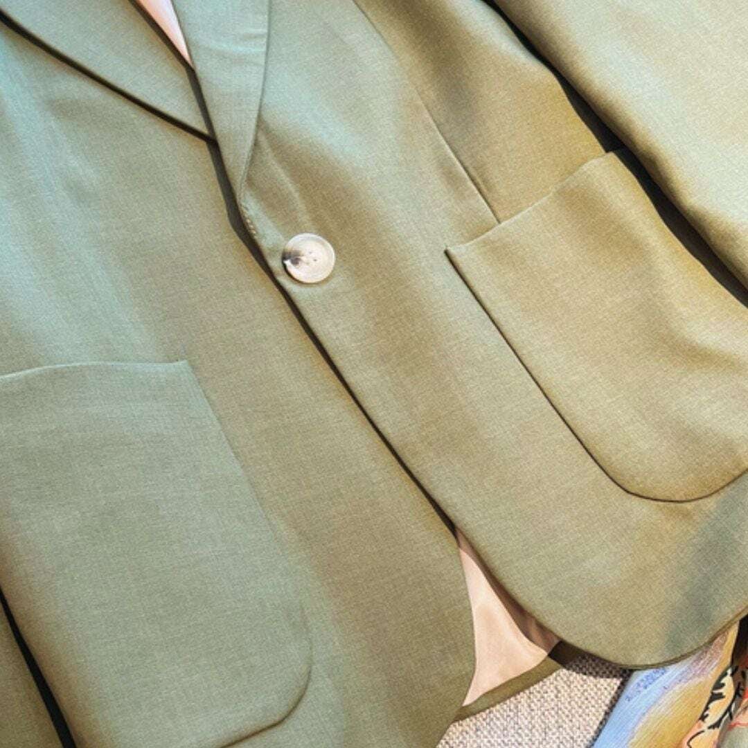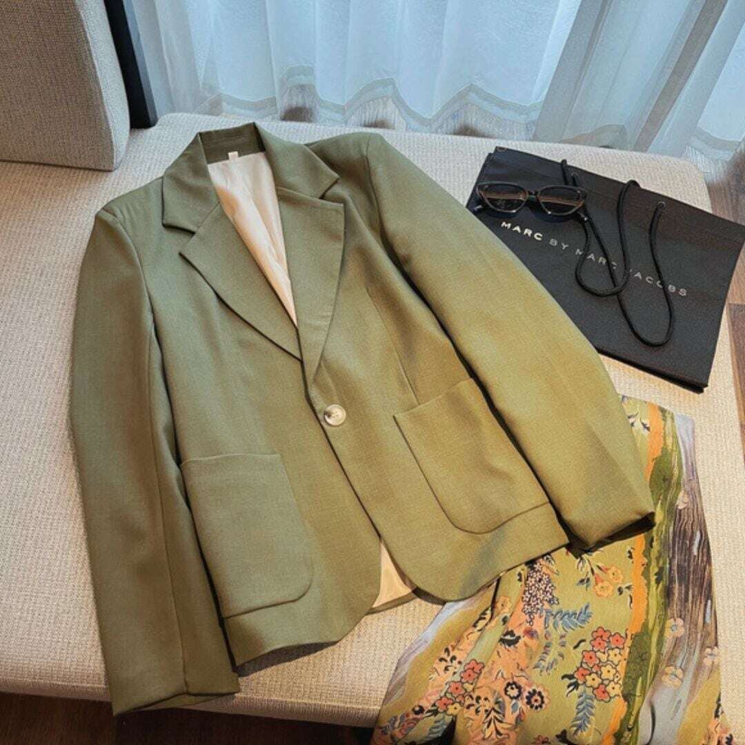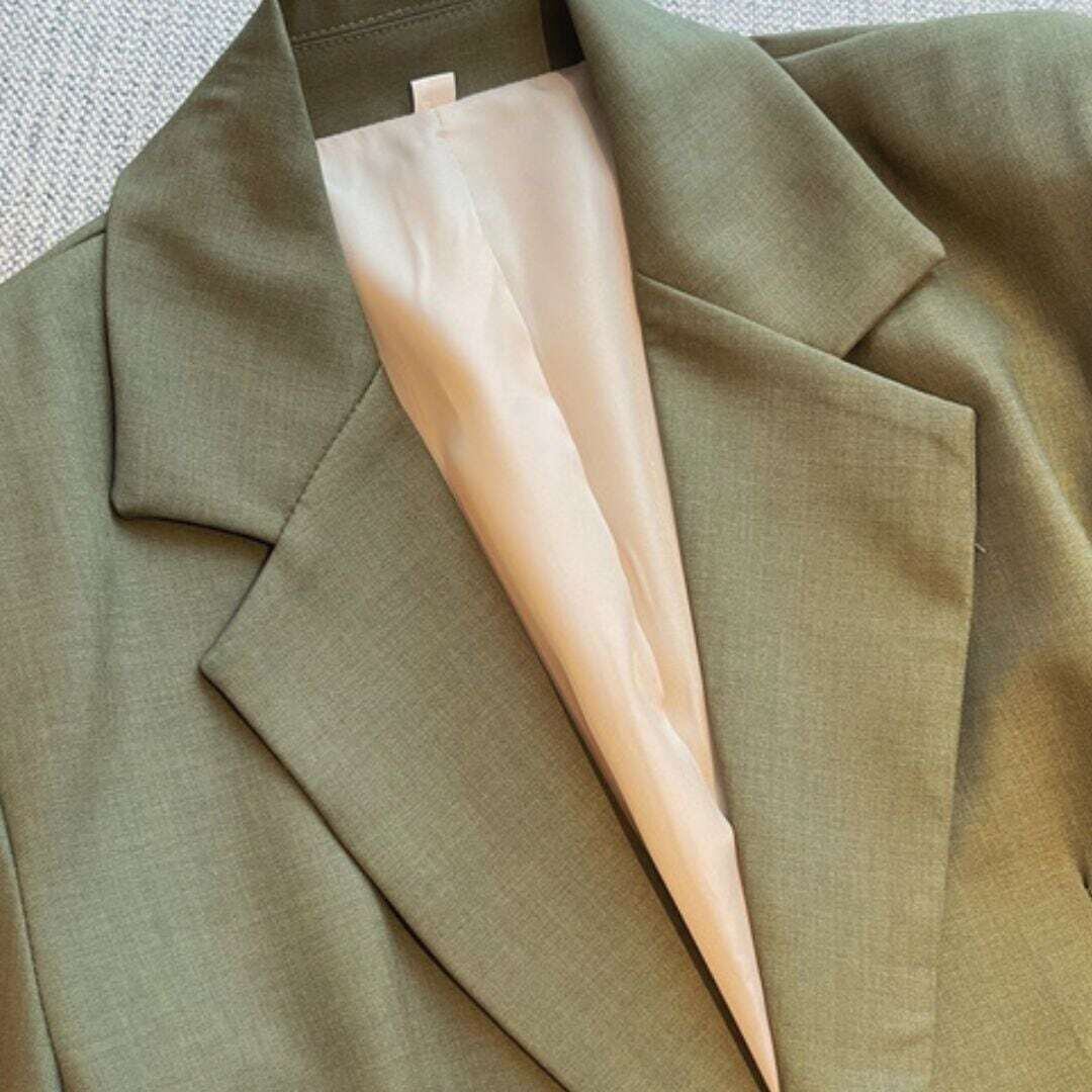 ワンボタンカーキテーラードジャケット