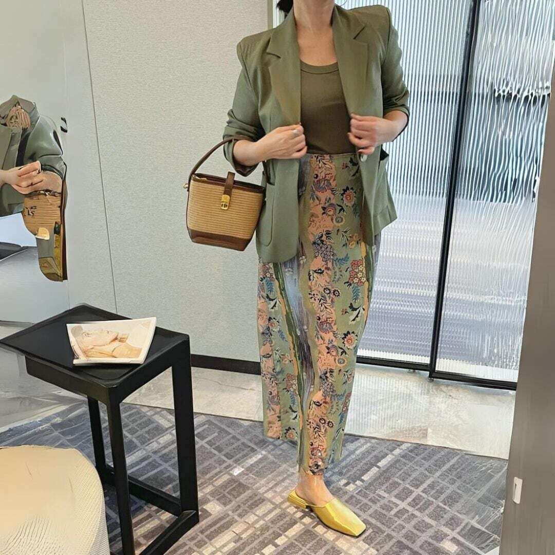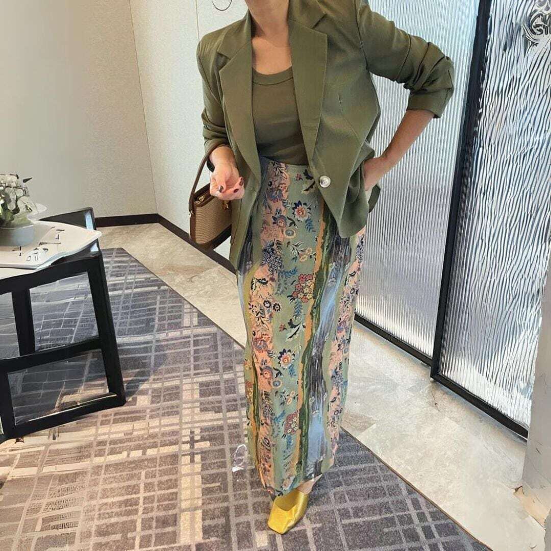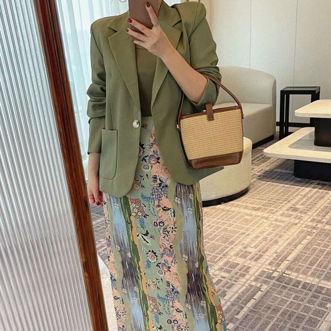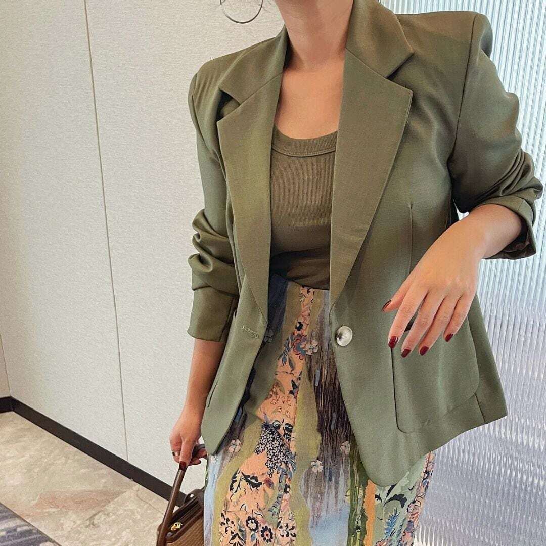 ワンボタンカーキテーラードジャケット