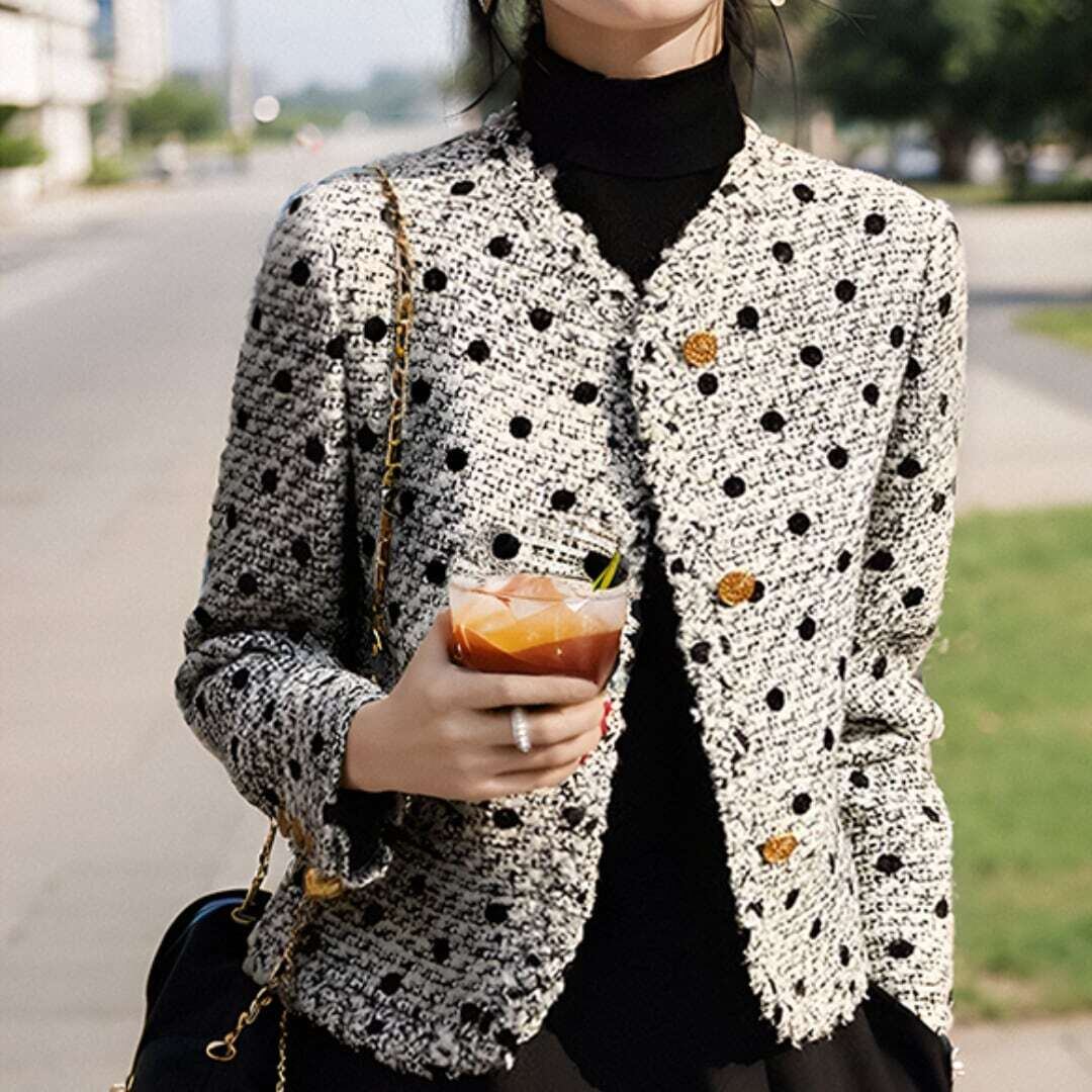 ブラックドットツイードショートジャケット