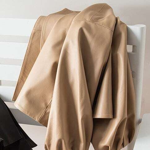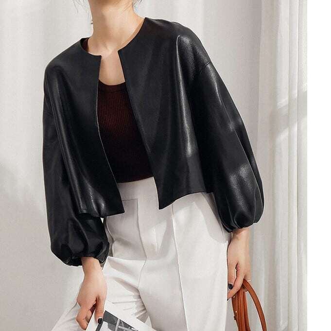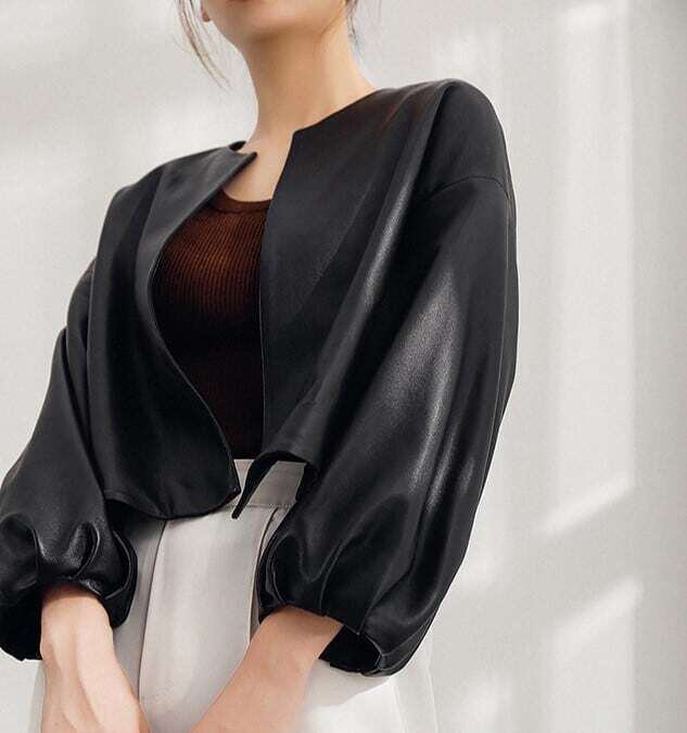 ノーカラーパフスリーブレザージャケット