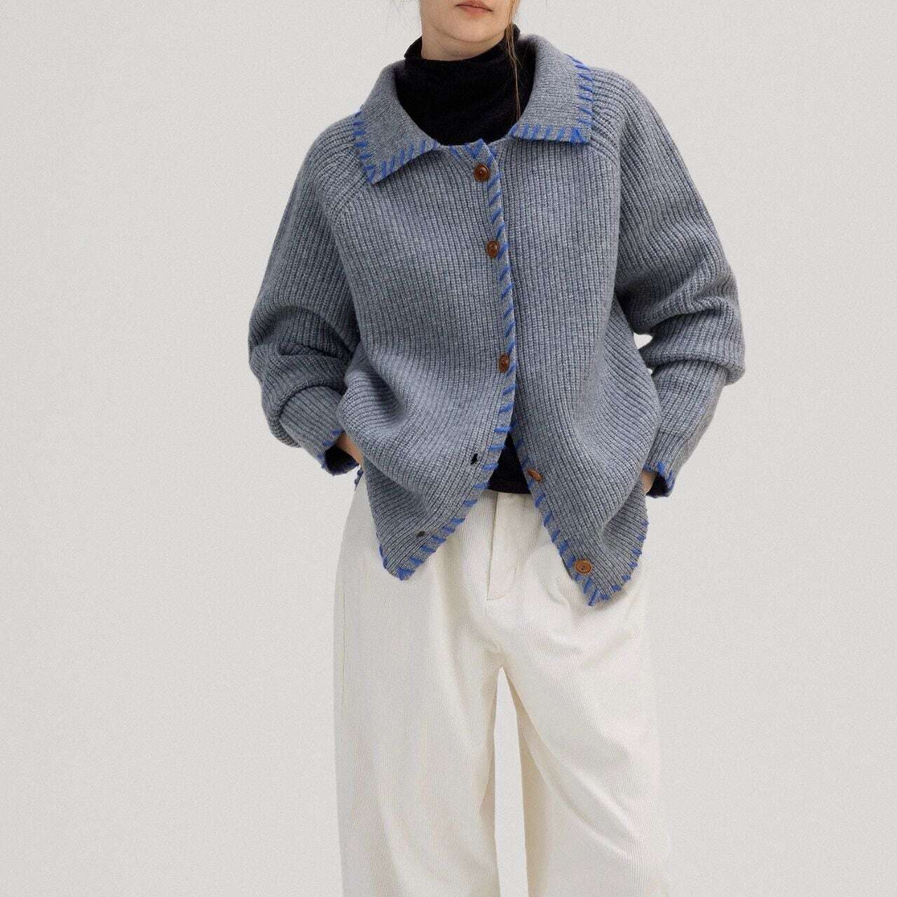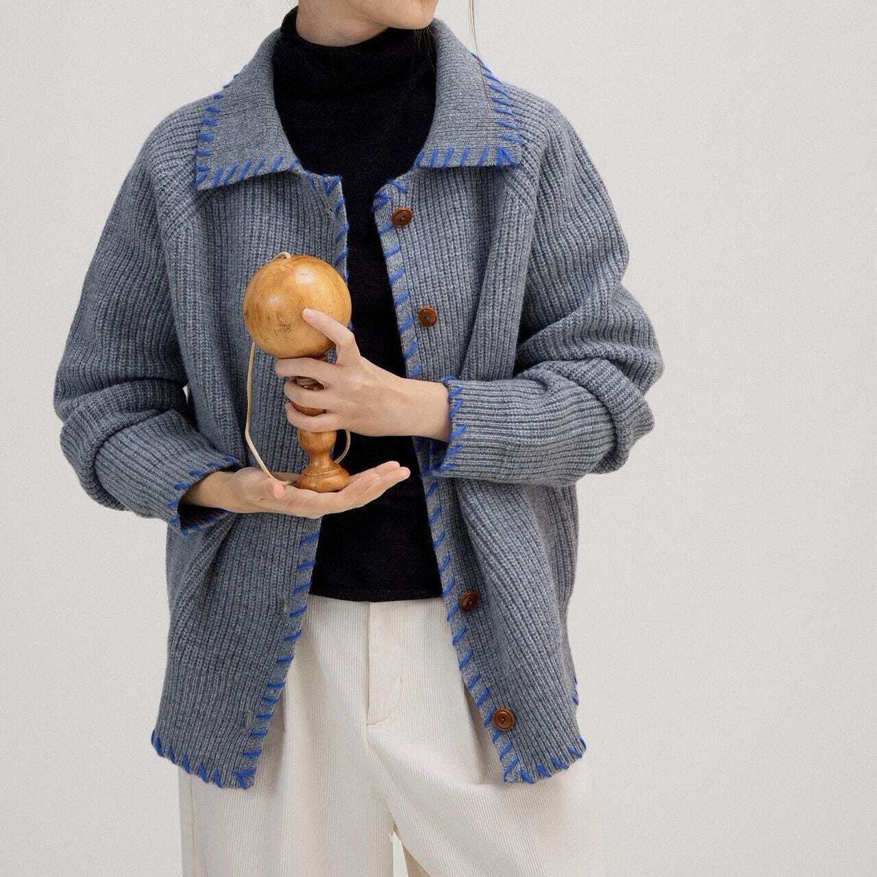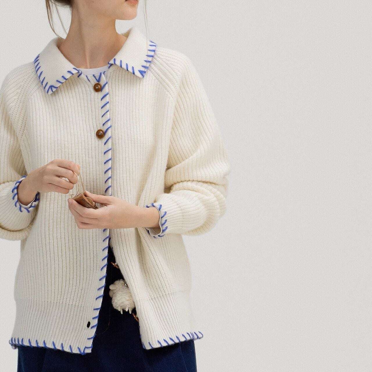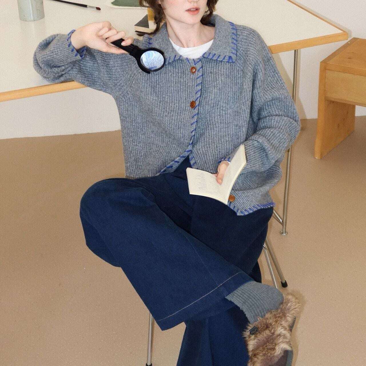 バイカラーステッチニットカーディガン