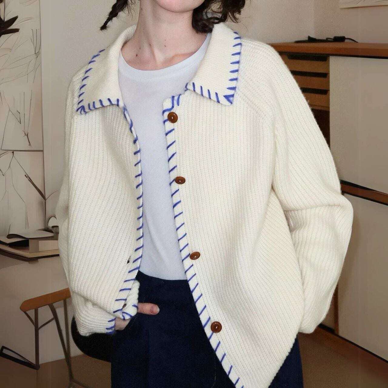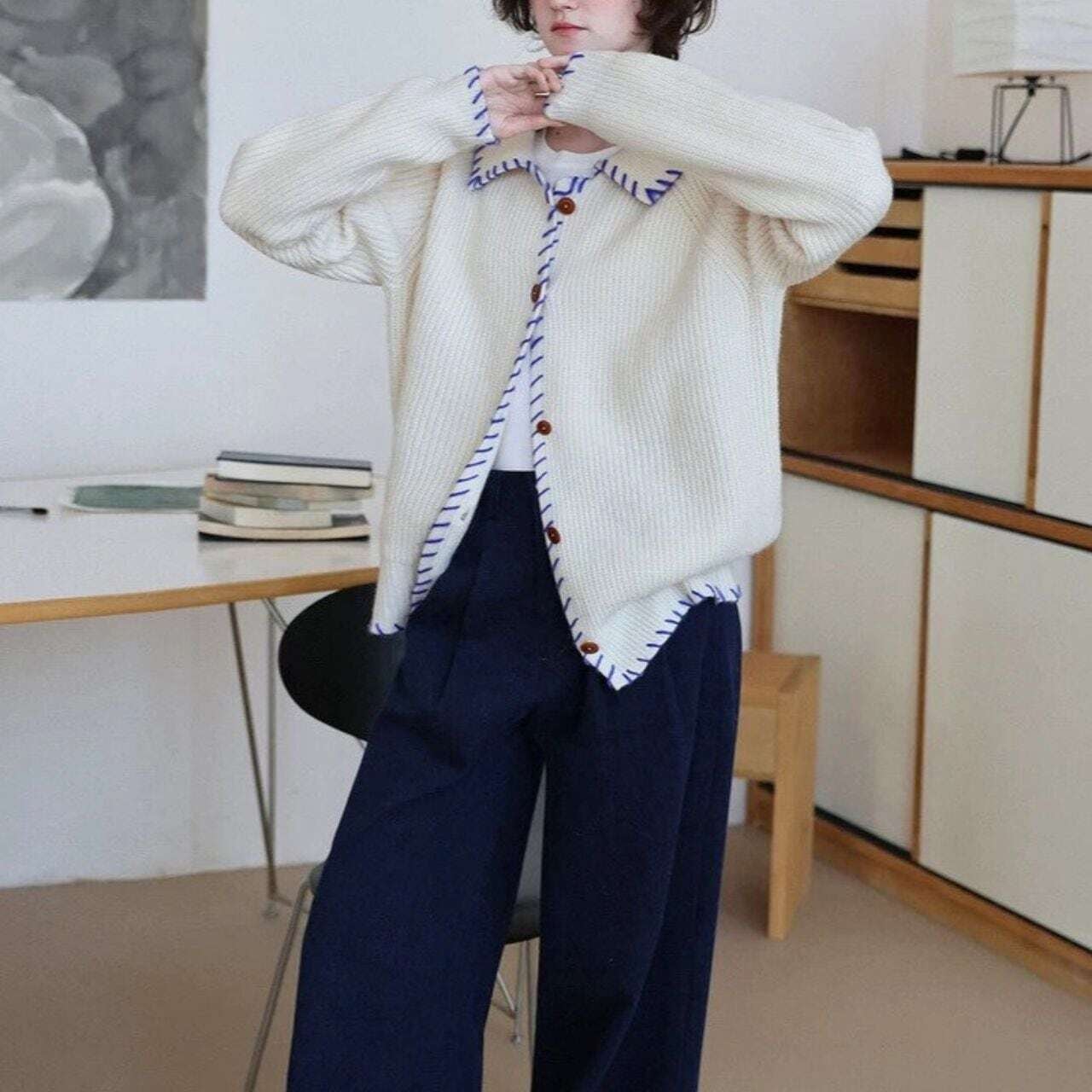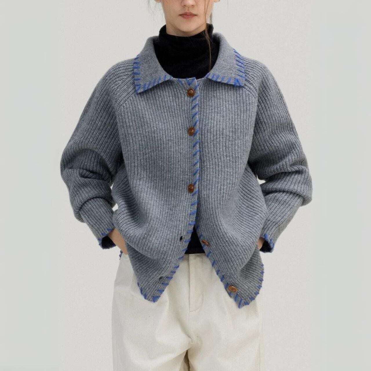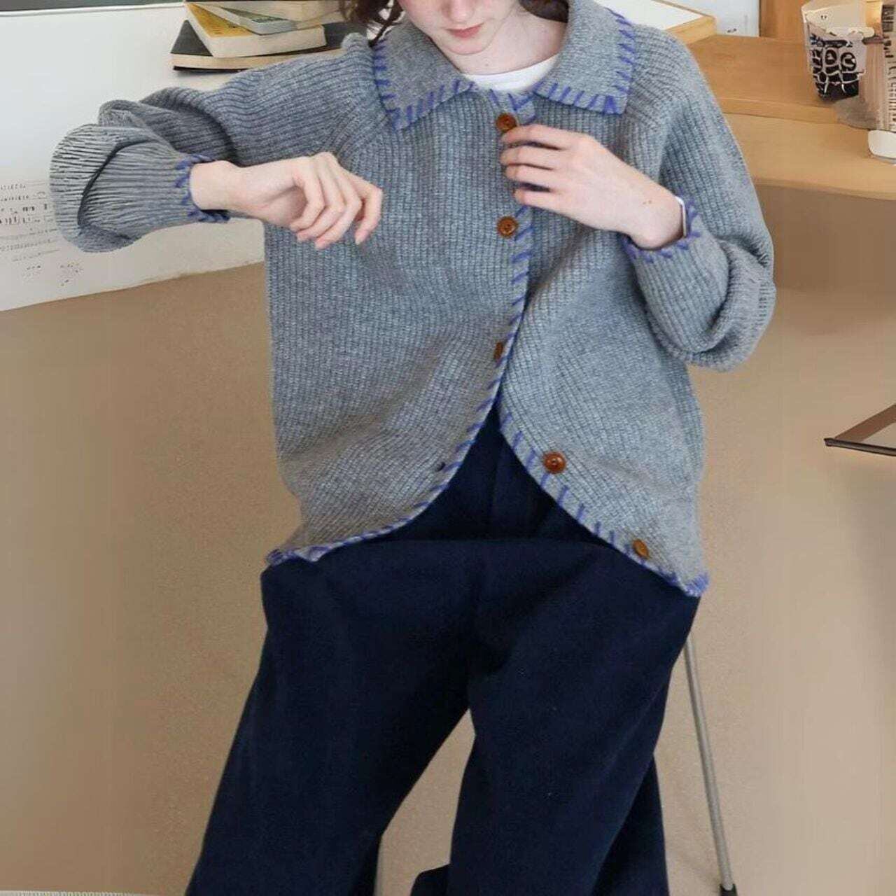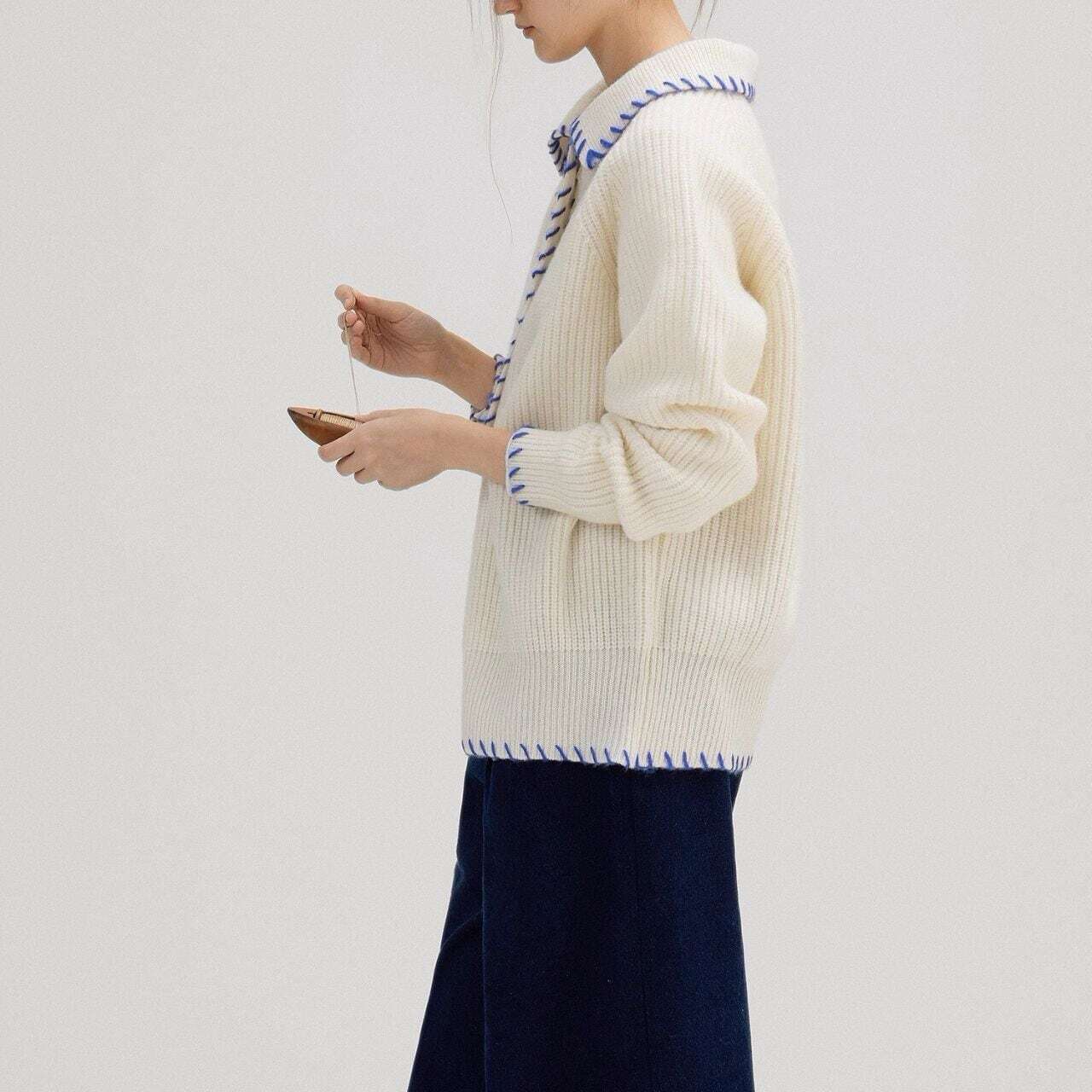バイカラーステッチニットカーディガン