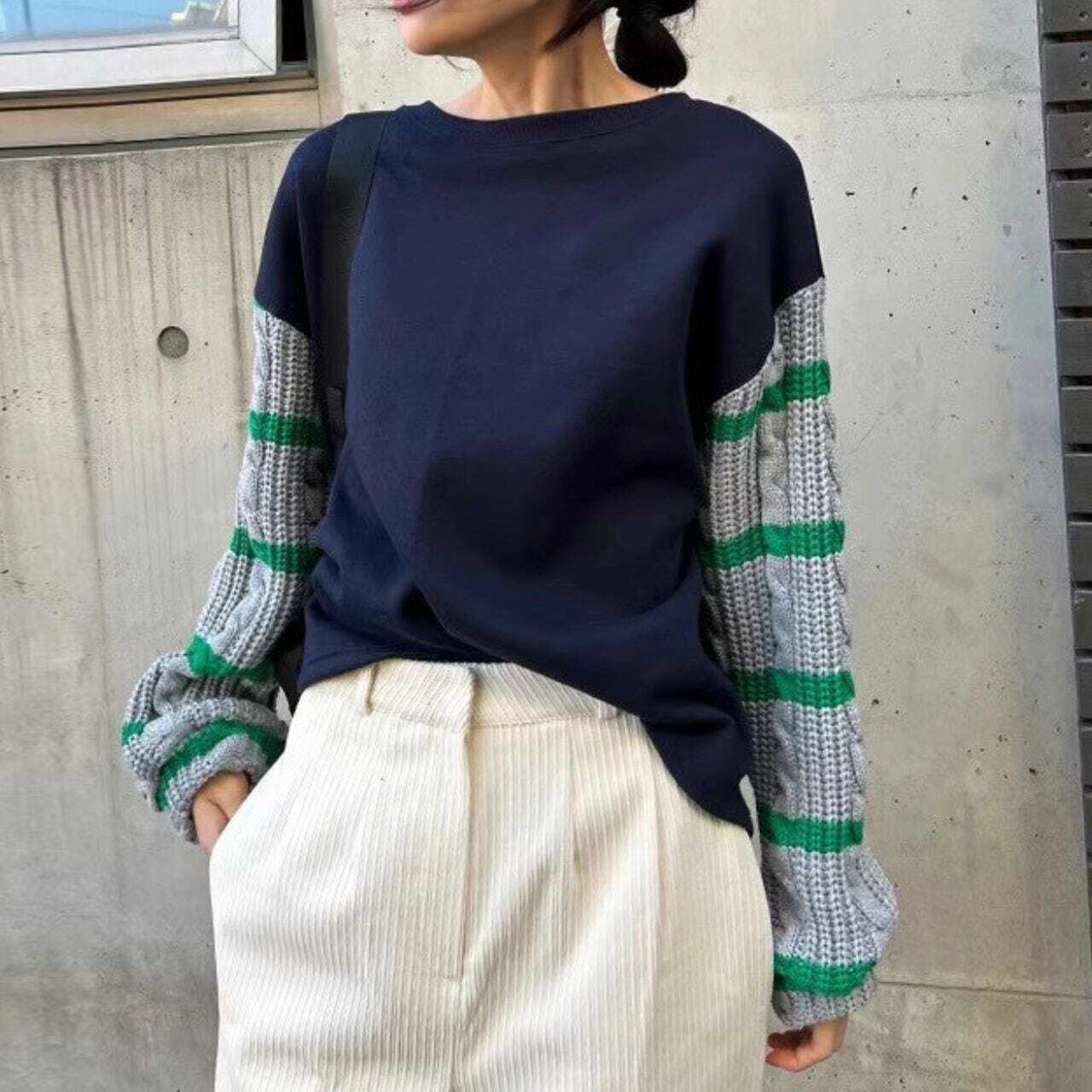 袖ボーダーフリルニットプルオーバー